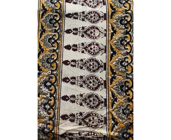 This Kalamkari Print Heavy Saree Is Crafted With 100% Pure Cotton Base Heavy Sari Pallu & Border Features Multi Color Kalamkari Work With Floral & Paisley Design.