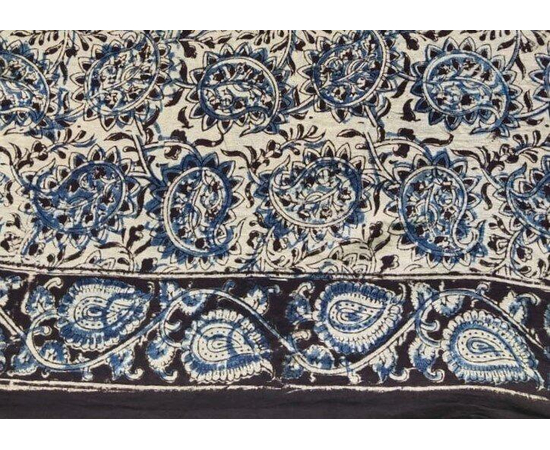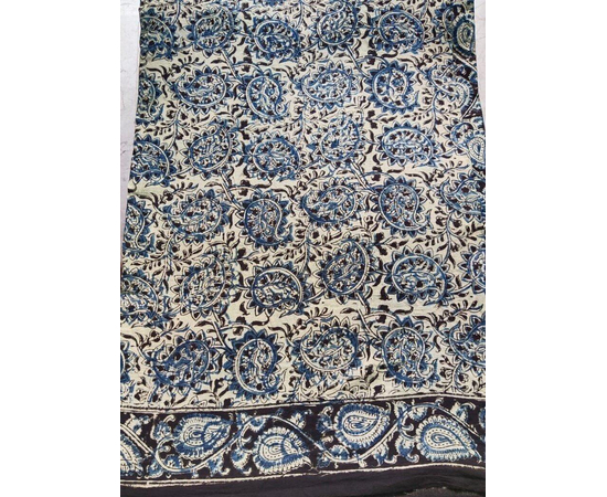 Pedana Kalamkari is a highly popular form of hand-painted or block-printed cotton textile and paintings, practiced in Andhra Pradesh, India. The beautifully printed saree with floral designs is a wonderful example of this form of art. It is a form of painting cotton fabrics with a kalam/Block i.e. pen/Block, which involves a sharp-pointed pierced bamboo regulating the flow of colour on the fabric.