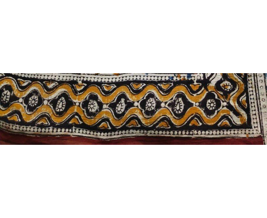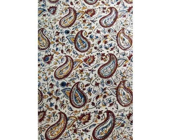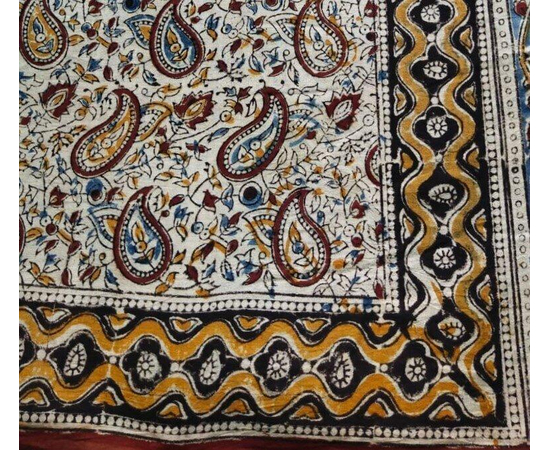 Pedana Kalamkari is a highly popular form of hand-painted or block-printed cotton textile and paintings, practiced in Andhra Pradesh, India. The beautifully printed saree with floral designs is a wonderful example of this form of art. It is a form of painting cotton fabrics with a kalam/Block i.e. pen/Block, which involves a sharp-pointed pierced bamboo regulating the flow of colour on the fabric.