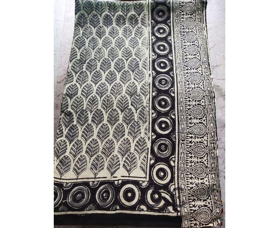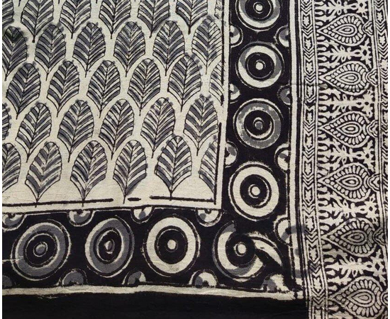 Handmade Kalamkari Cotton Saree with Unstitched blouse | Vintage Sari | 100% Pure Cotton Kalamkari Saree | White Black Kalamkari Saari | Indian Fabric