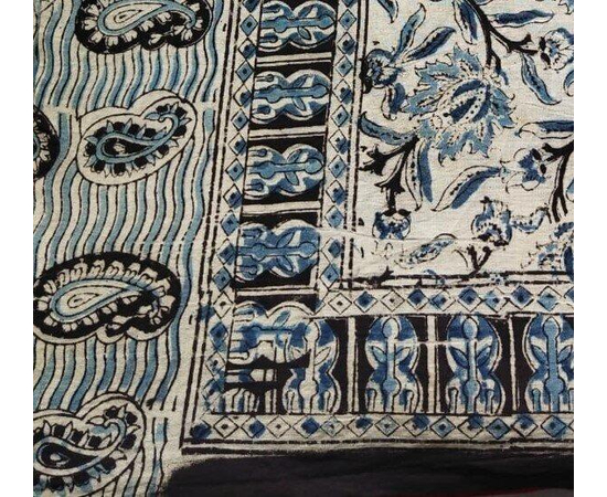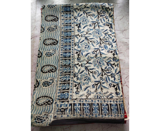 Pedana Kalamkari is a highly popular form of hand-painted or block-printed cotton textile and paintings, practiced in Andhra Pradesh, India. The beautifully printed saree with floral designs is a wonderful example of this form of art. It is a form of painting cotton fabrics with a kalam/Block i.e. pen/Block, which involves a sharp-pointed pierced bamboo regulating the flow of colour on the fabric.