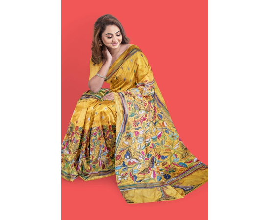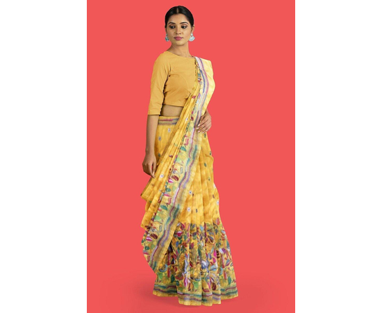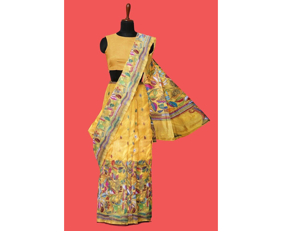 This gorgeous saree is perfect for any occasion where you like to look elegant and carry a piece of Bengal Heritage craft with you.