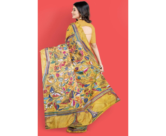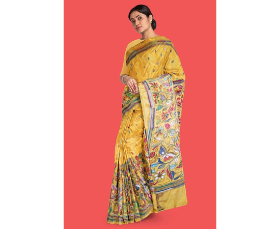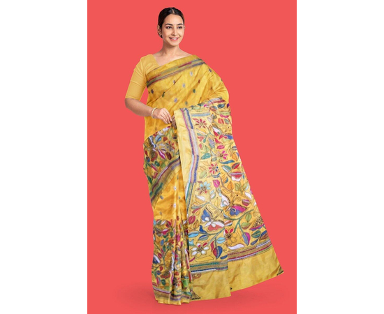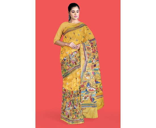 Kantha Handwoven Saree - Pure Silk Kantha Handwoven Saree - Pure Silk Saree With Blouse Piece - Hand block Print Trendy Party Wear Saree
