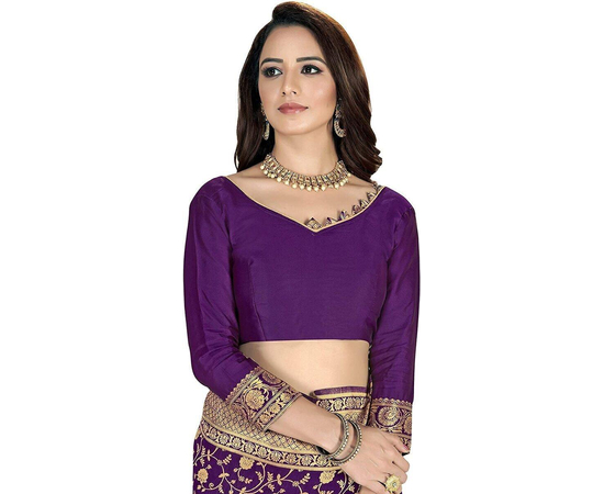 - Work Type: Blouse details: Color- Wine, Material- Silk, Length- 0.8 m, Work Type- Solid Blouse with Zari Border