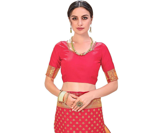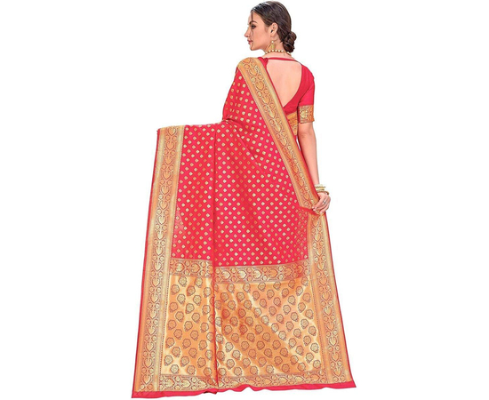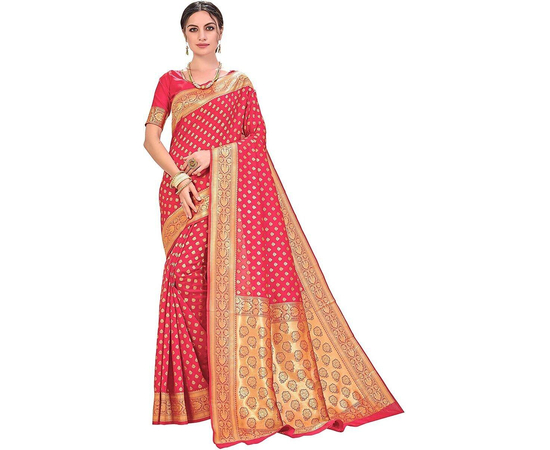 Sarees Women's Banarasi Silk Saree With Blouse Piece Gajari Colour