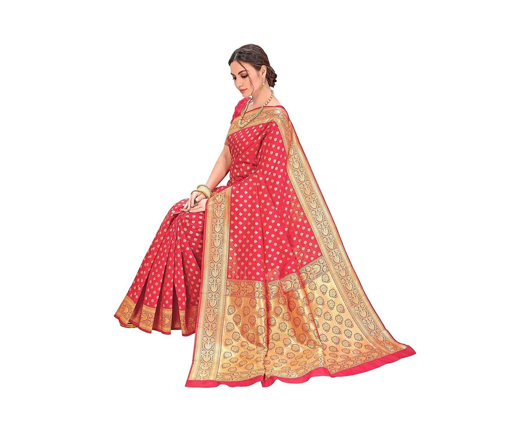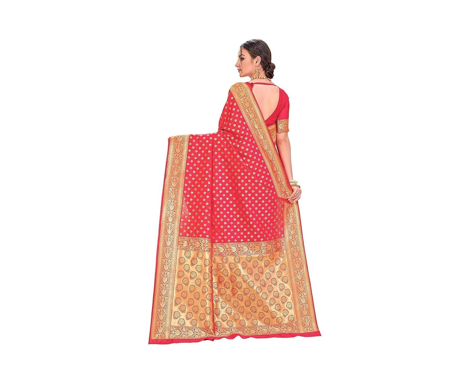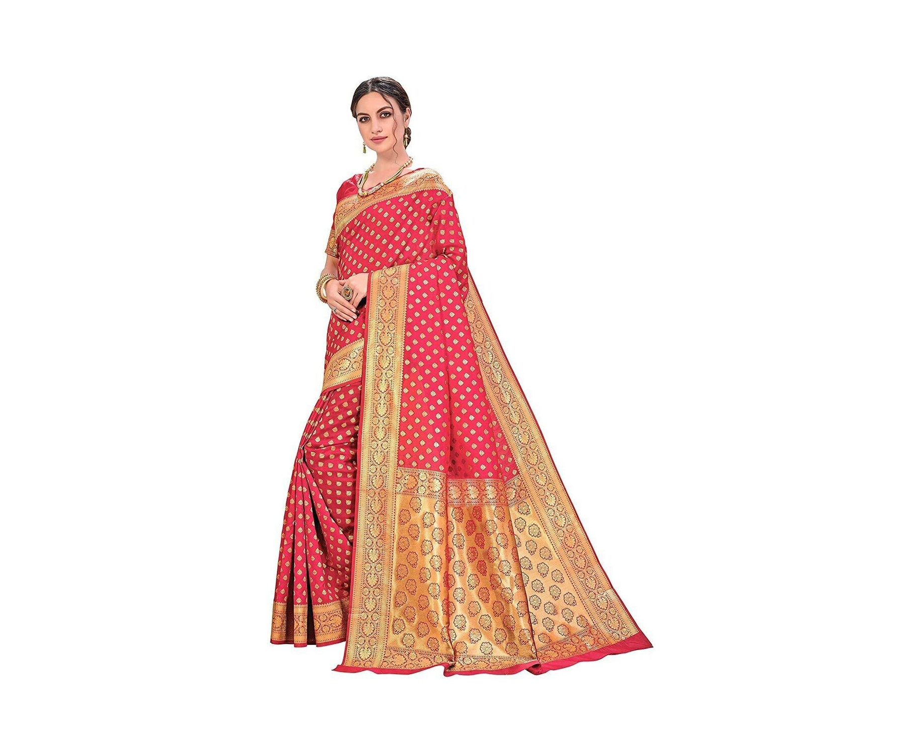Sarees Women's Banarasi Silk Saree With Blouse Piece Gajari Colour