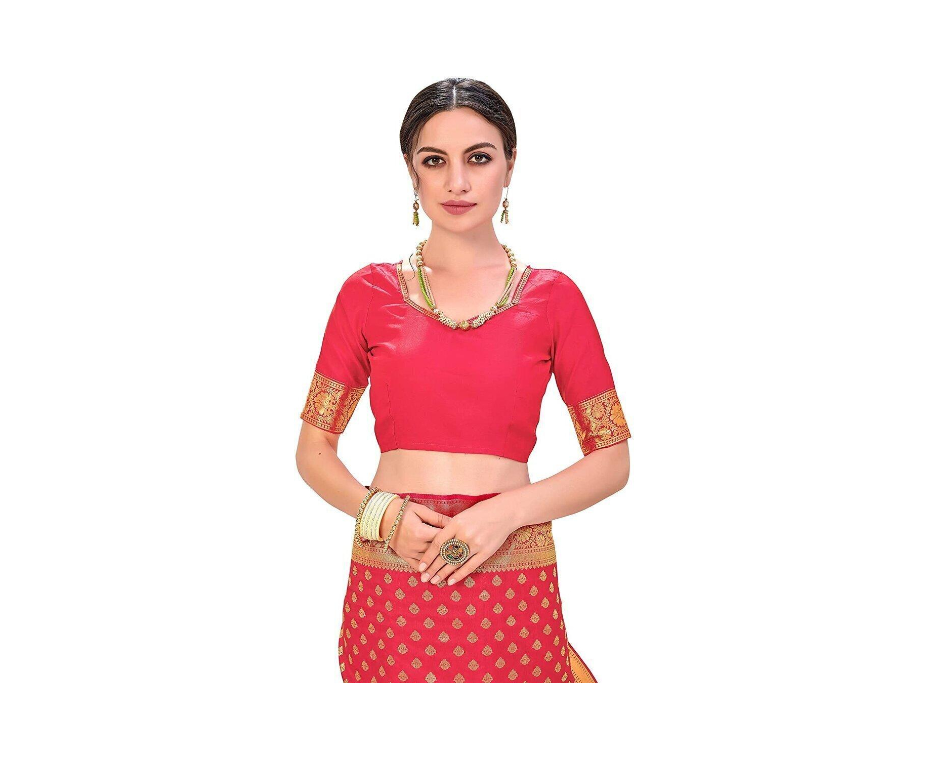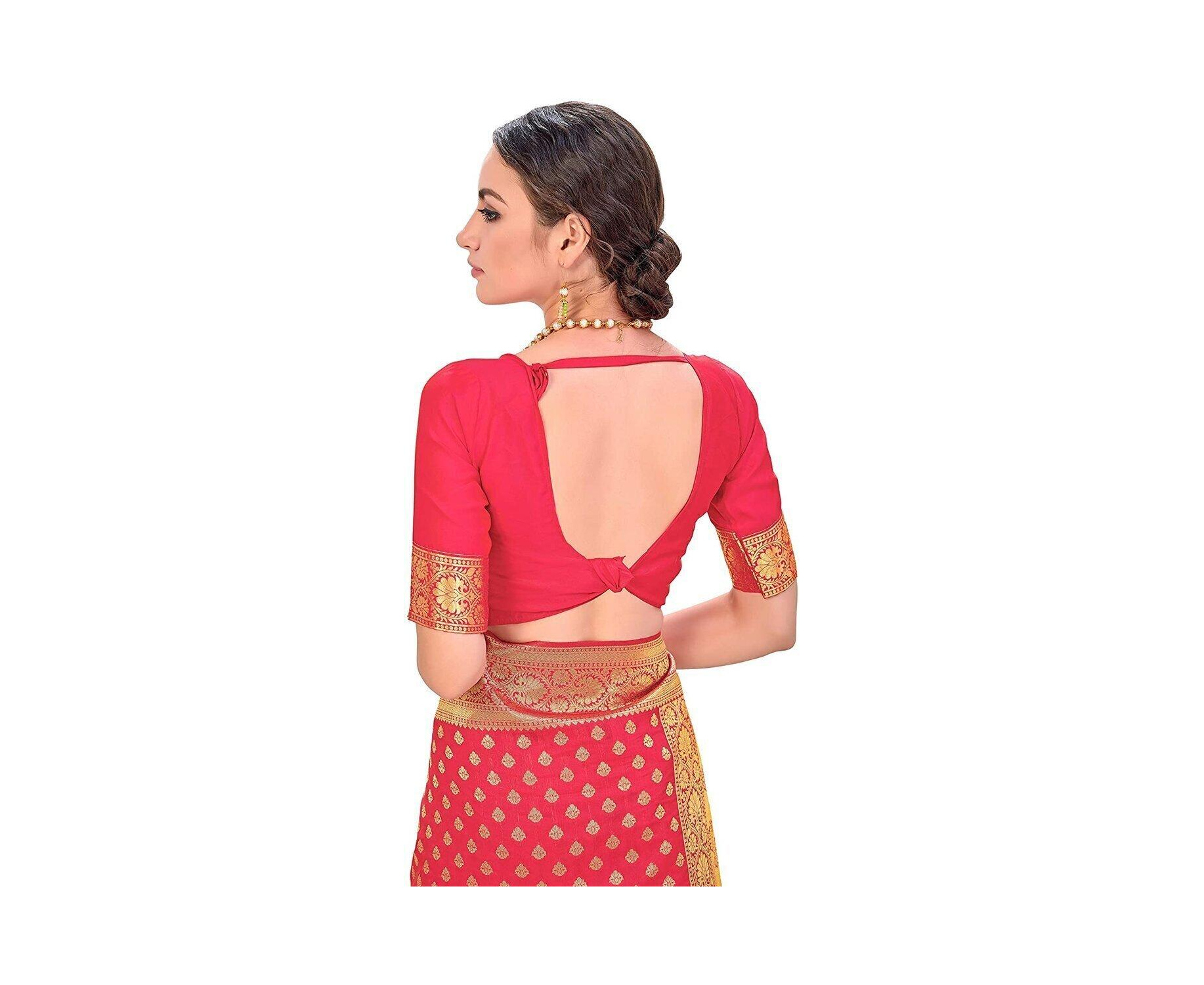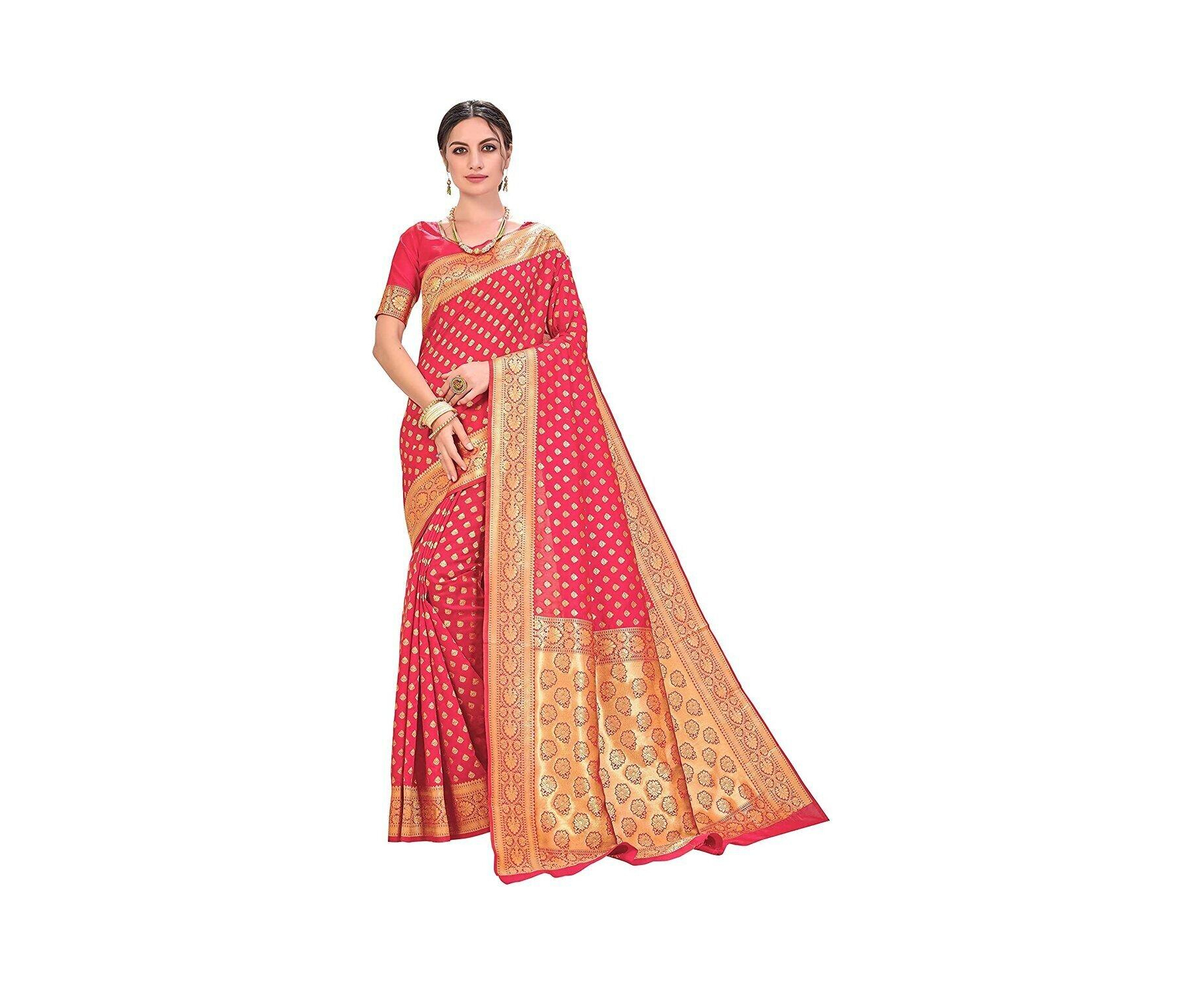 Sarees Women's Banarasi Silk Saree With Blouse Piece Gajari Colour