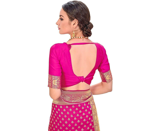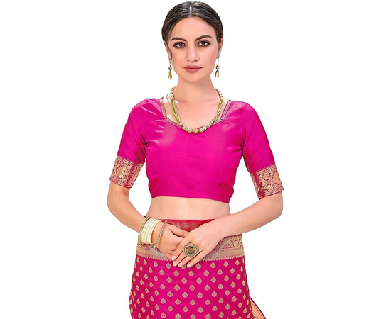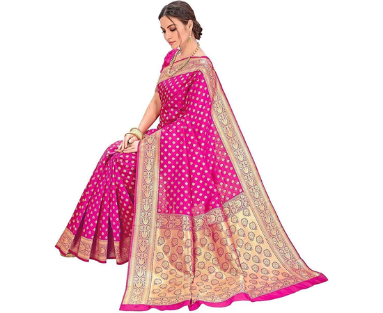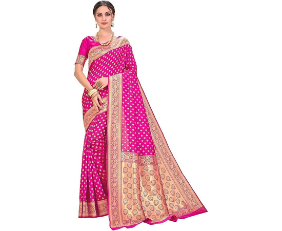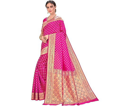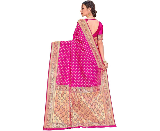 Sarees Women's Banarasi Silk Saree With Blouse Piece Magenta Colour