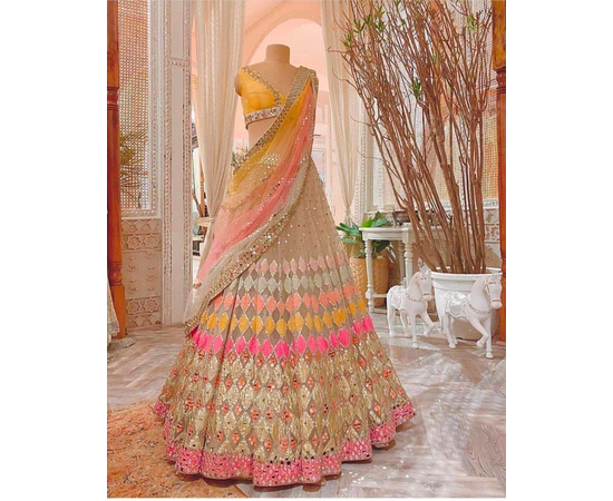 Introducing our Women's Lehenga - the perfect addition to your festive wardrobe. This Partywear Lehenga set boasts intricate embroidery and luxurious fabrics, making it an ideal choice for any special occasion. Whether you're attending a wedding or celebrating a festival, this Lehenga set is sure to turn heads. Crafted with the utmost attention to detail, this Women's Lehenga features a stunning design that combines traditional elegance with modern sophistication.