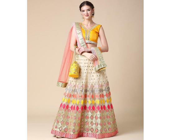 The intricate embroidery on the blouse and skirt adds a touch of glamour to the ensemble, while the flowing drapes create a flattering silhouette. Made with high-quality materials, this Festive Lehenga set is both durable and comfortable to wear. The smooth fabric feels soft against the skin and drapes beautifully, making you feel confident and elegant all day long. Plus, the set includes a dupatta that perfectly complements the Lehenga, adding an extra layer of grace.