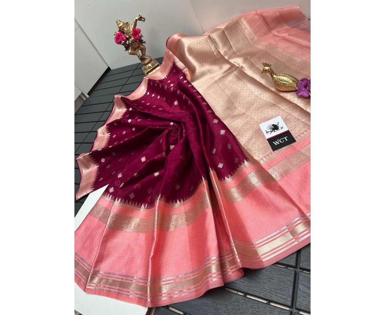 Material: Warm silk sarees are typically made from high-quality silk fibers, which lend them a luxurious and soft texture.