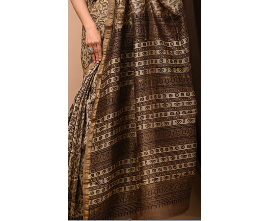 Traditional Pure Ajrakh & bagru print Hand block Printed Chanderi silk Saree, Beautiful Printed Sari With Unstitched Blouse Piece, Indian Saree