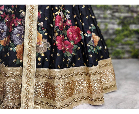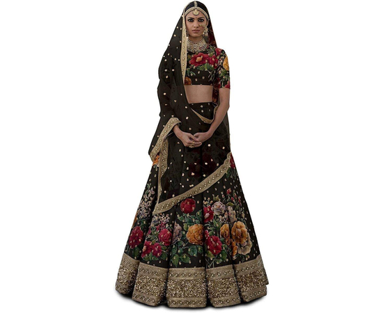 Be the best of you for a wedding or festivities with this lehenga choli. The lehenga has a beautiful design and intricate work along its borders which gives it a unique appeal. The lehenga can be paired with fashion sandals for a festive occasion. One can also pair it with bangles and a necklace for a complete look.