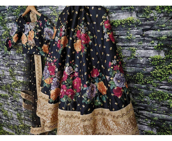 Dry clean is recommended for this lehenga choli set to maintain texture and longevity. Steam iron at low temperature for proper care of the fabric. Do not iron on embellishments.