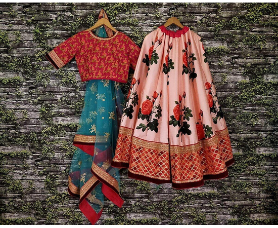 - Lehenga Fabric: Fine Art Silk, Blouse Fabric: Raw Silk, Dupatta Fabric: Net