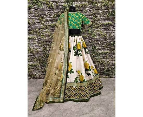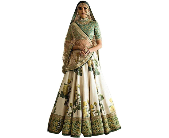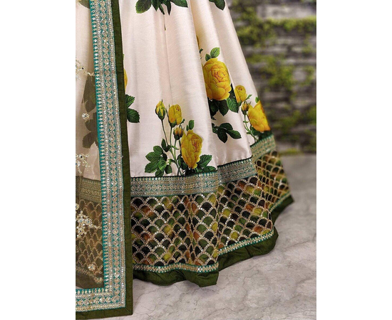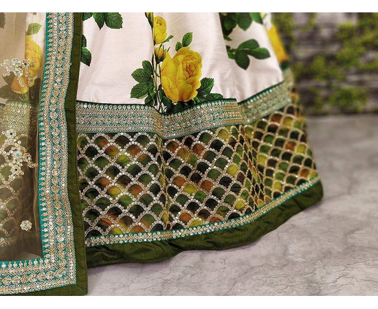 - Lehenga Work: Digital print and Embroidered with Dori and Sequins; Blouse Work: Zari and Multi Thread Embroidery Work; Dupatta Work: Dori and Sequins Embroidered with Lace