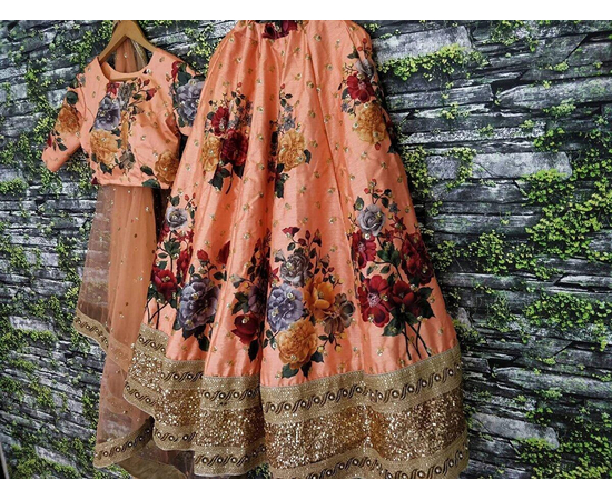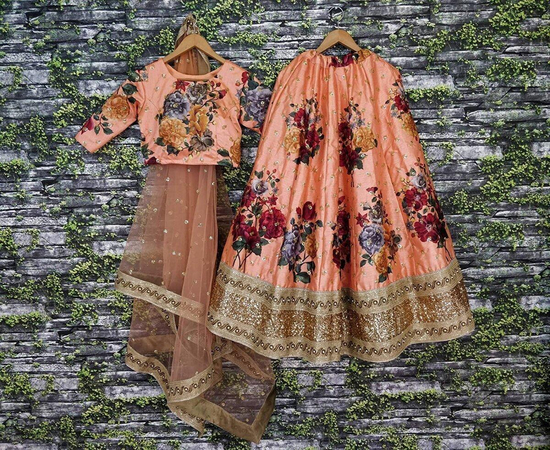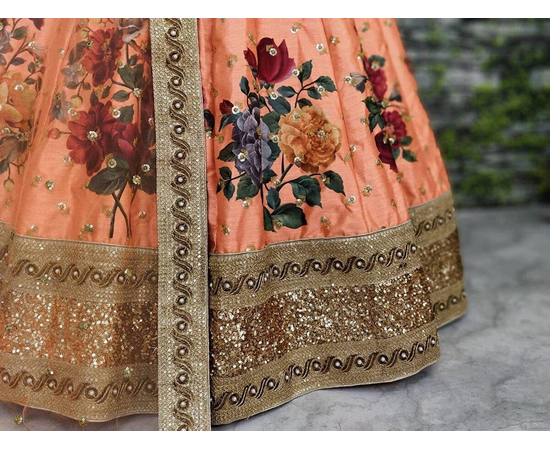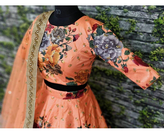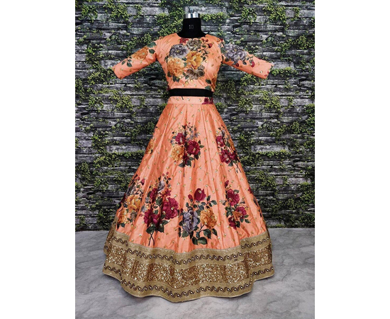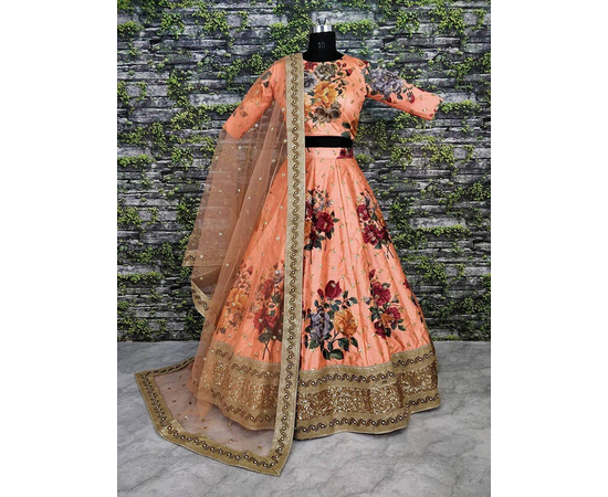 Women's Silk Semi-stitched Lehenga Choli Peach