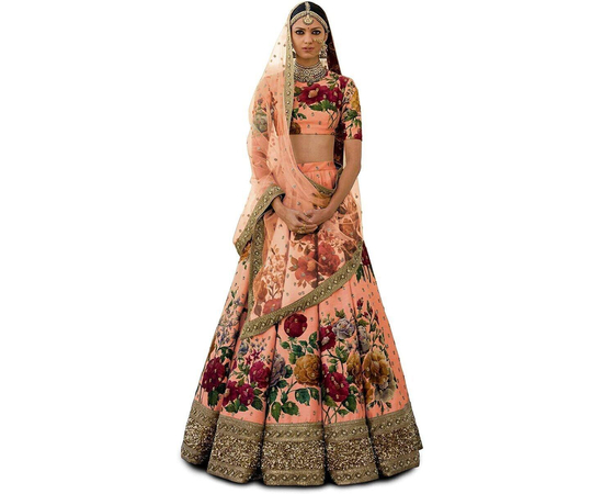 Be the best of you for a wedding or festivities with this lehenga choli. The lehenga has a beautiful design and intricate work along its borders which gives it a unique appeal. The lehenga can be paired with fashion sandals for a festive occasion. One can also pair it with bangles and a necklace for a complete look.