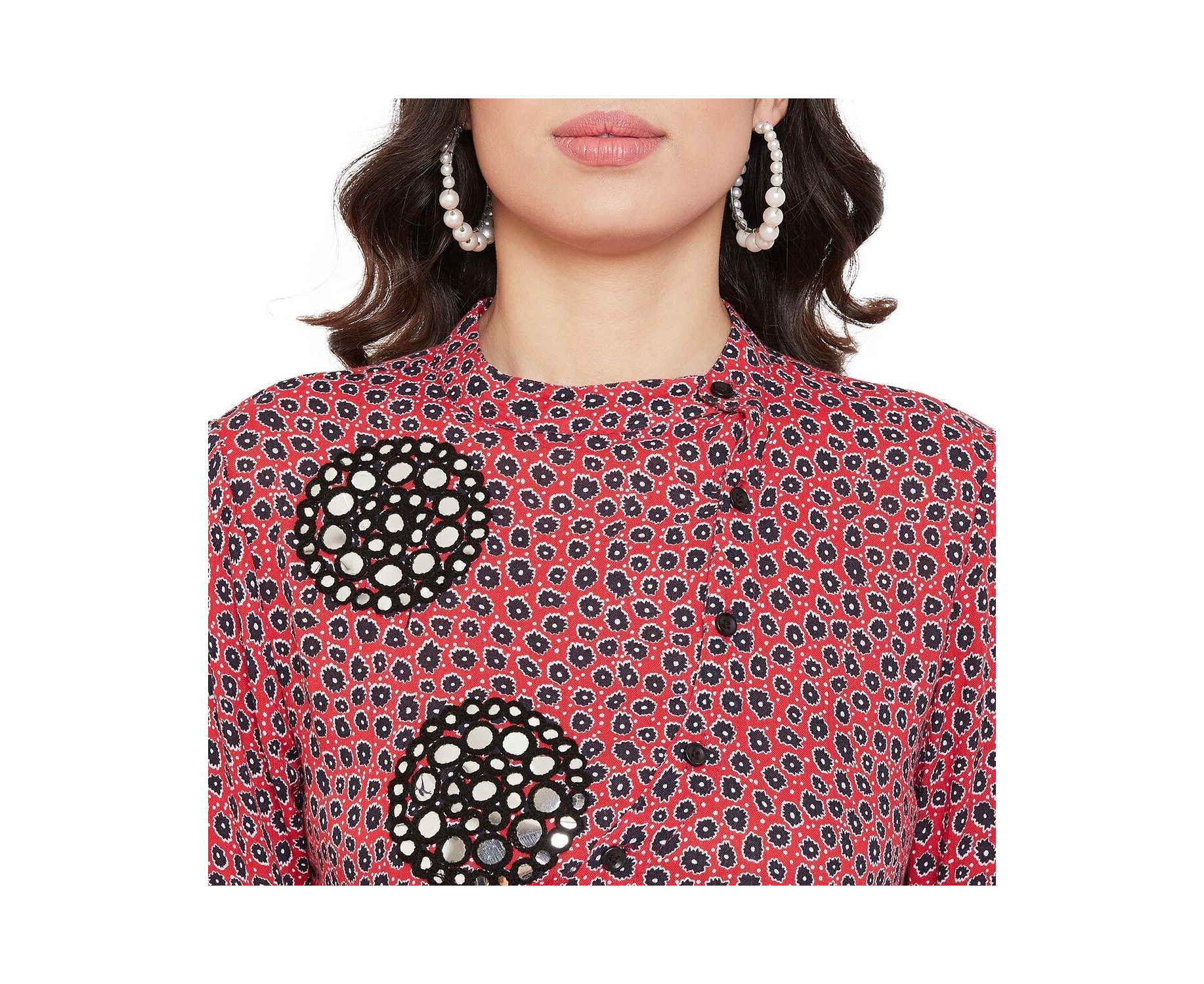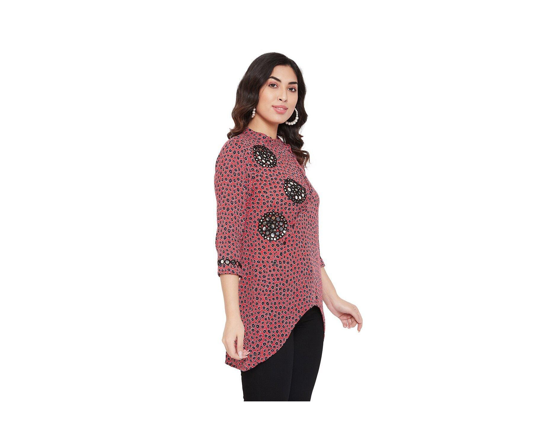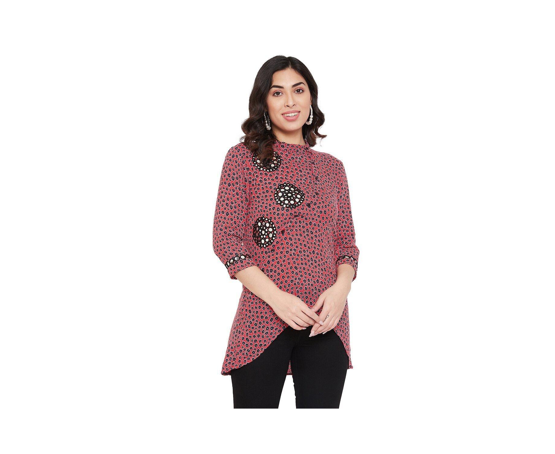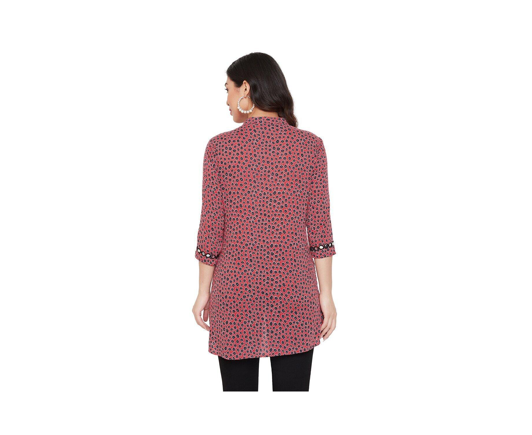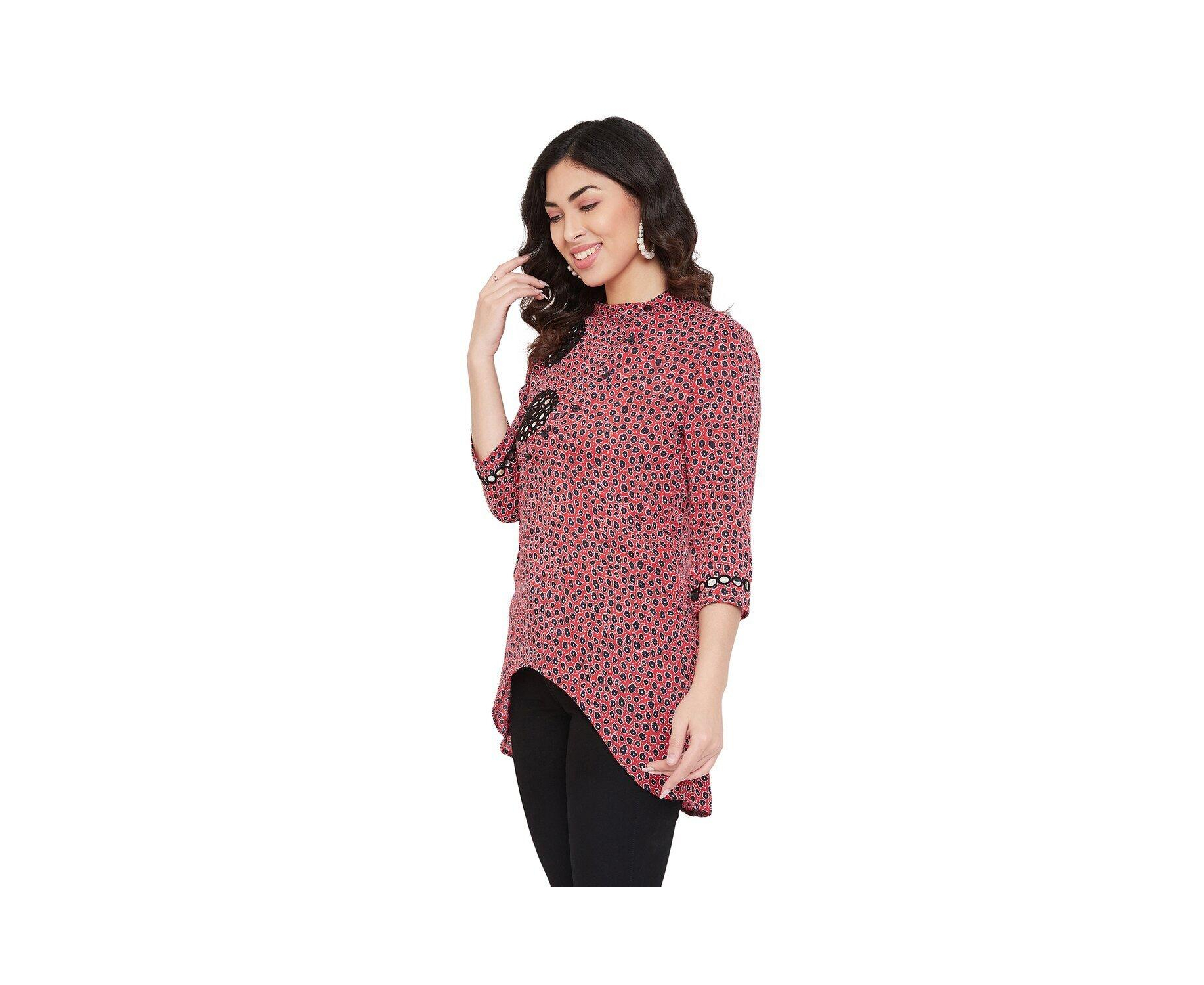 Rayon Crepe Embroidered with Mirror Work Red and Black Tunic