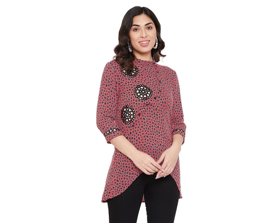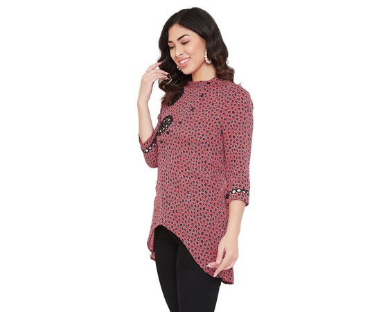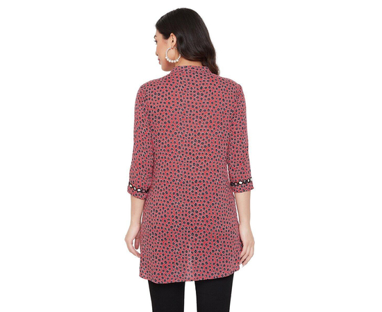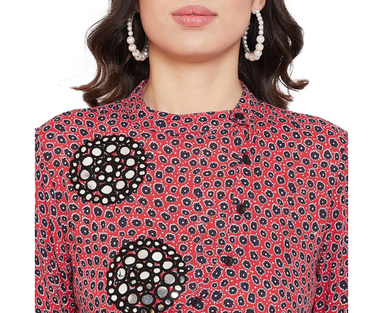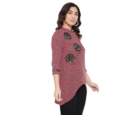 Rayon Crepe Embroidered with Mirror Work Red and Black Tunic