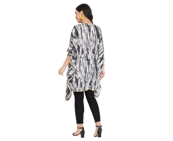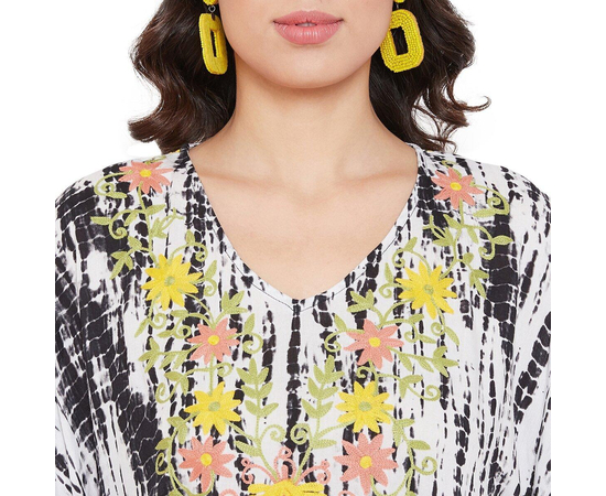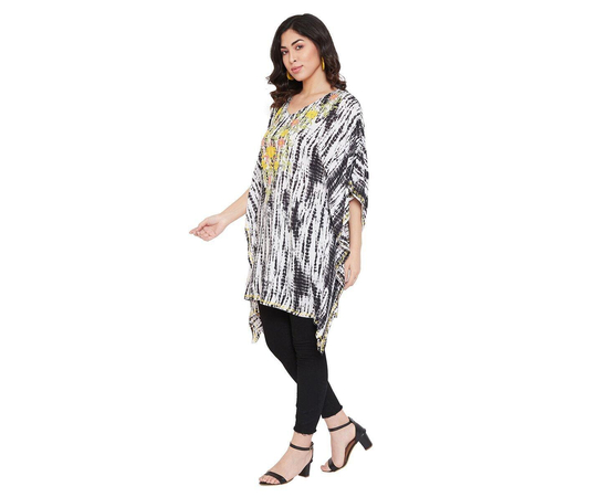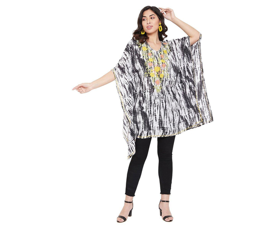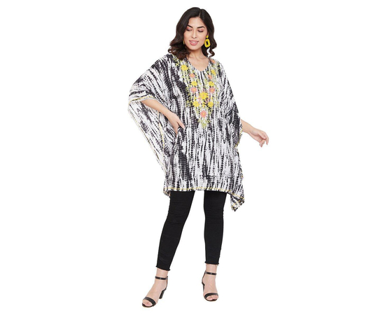 The pure rayon caftan for women is designed as a fusion of traditional and current trend of women fashion clothing. The fabric of caftan with tie dye print using natural colours which is very cool and comfortable for your skin all the day.