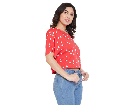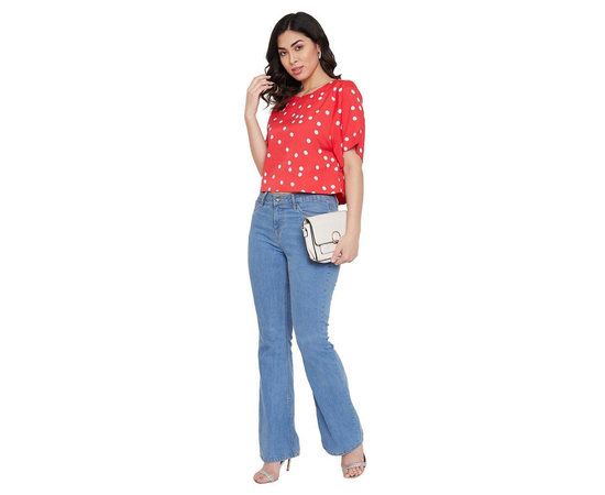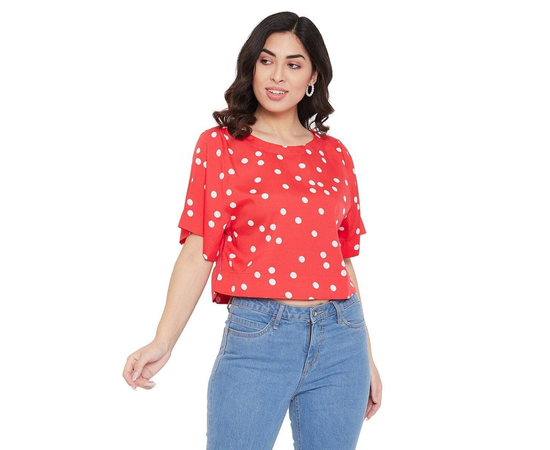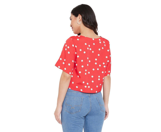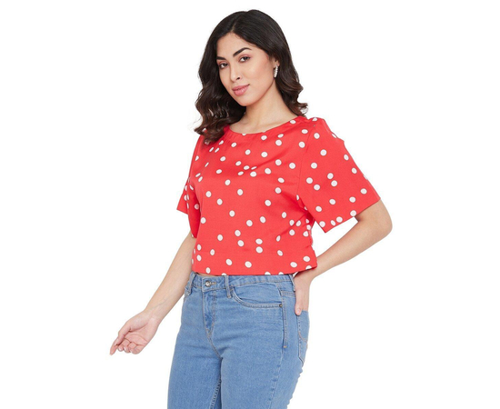 Women's Poly Crepe Polka Dot Red Top