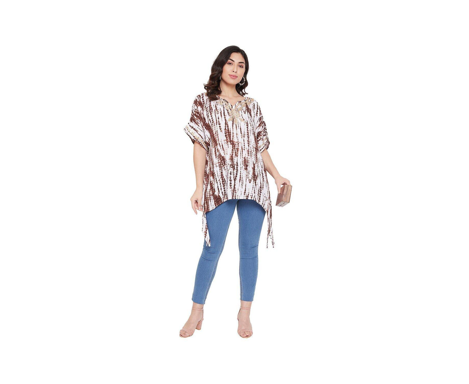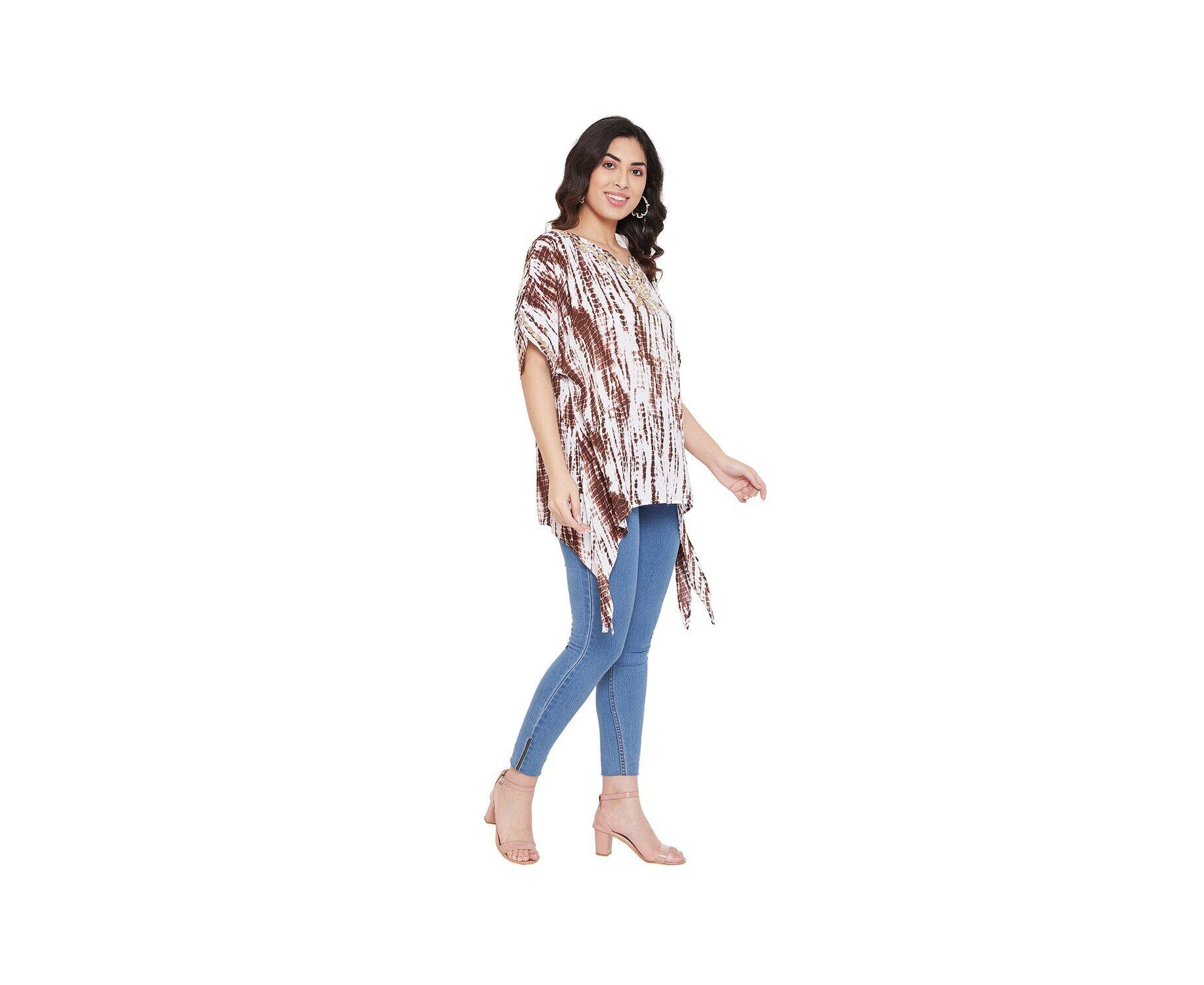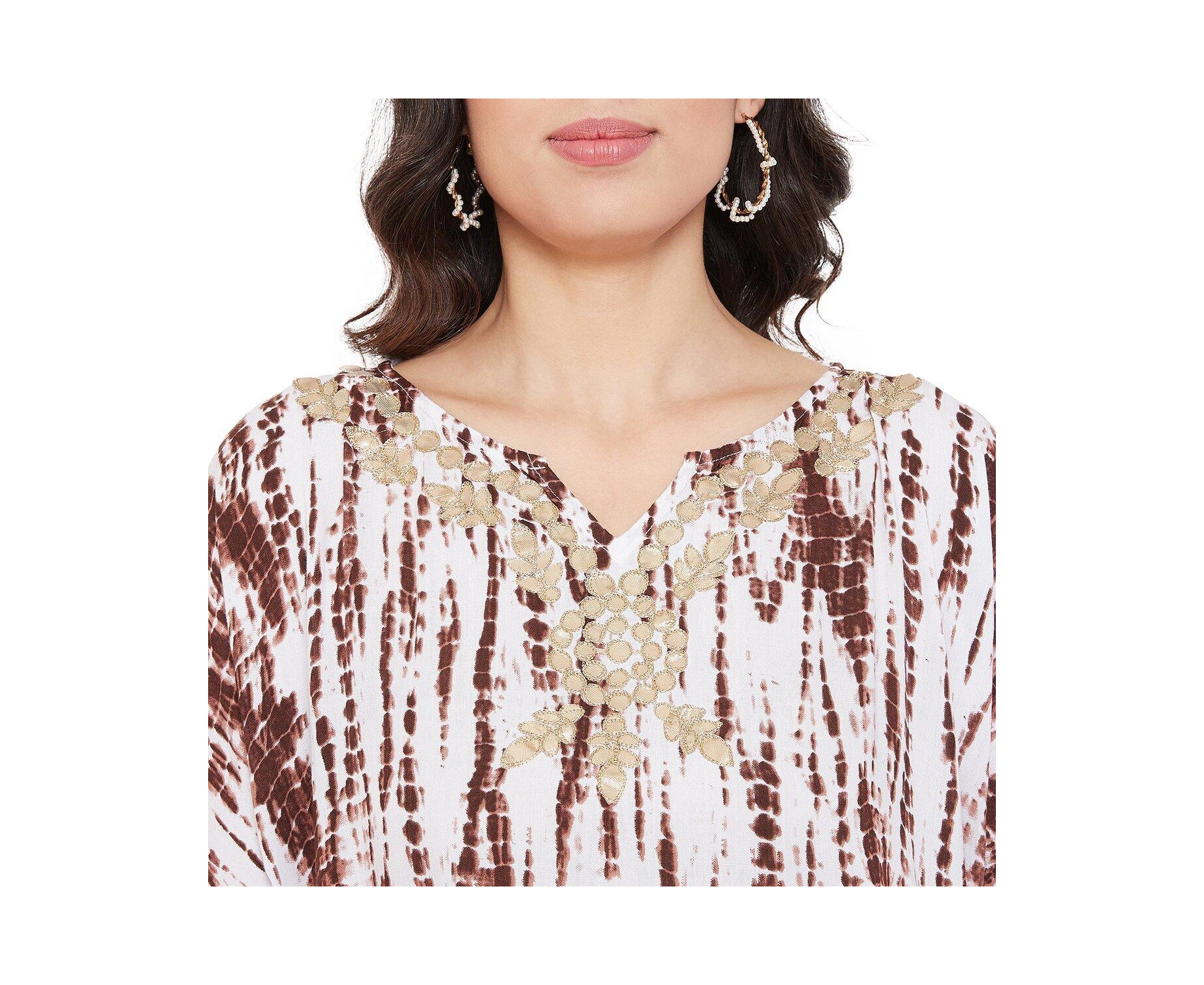 Rayon Tie Dye Embroidered Brown Kaftan Top
