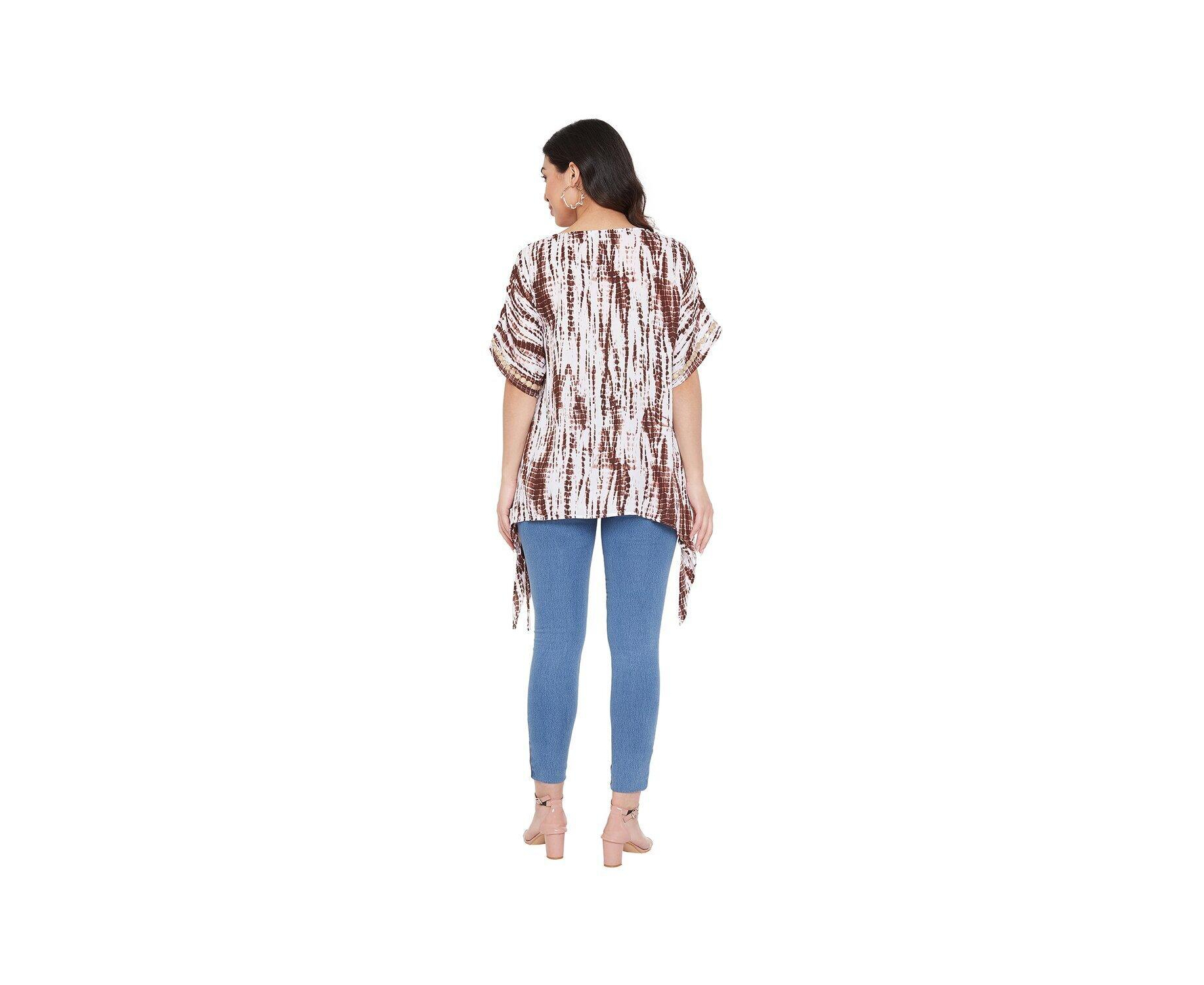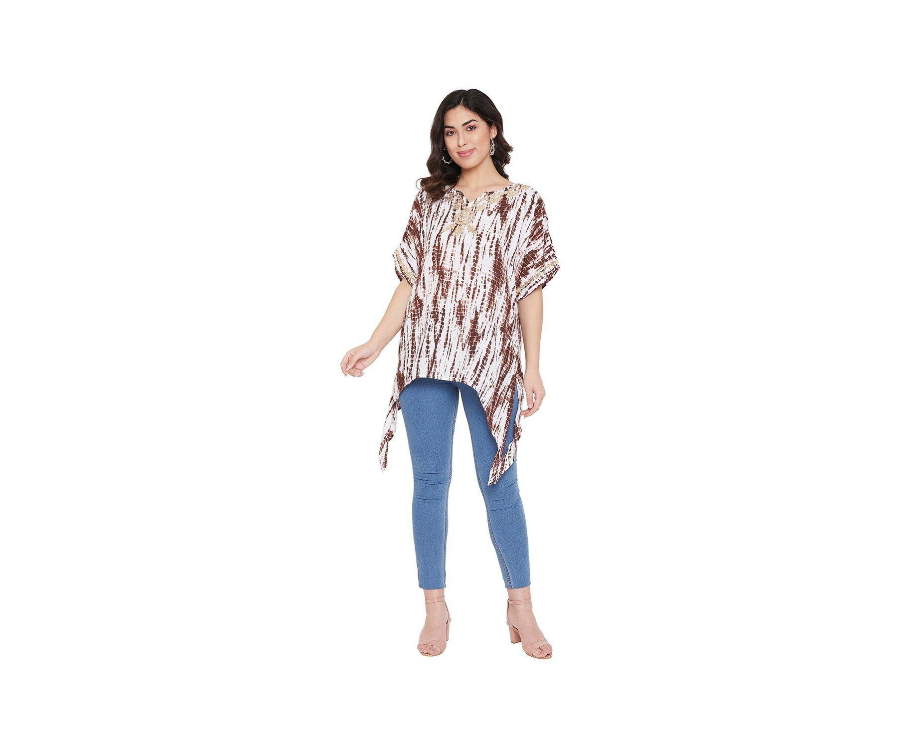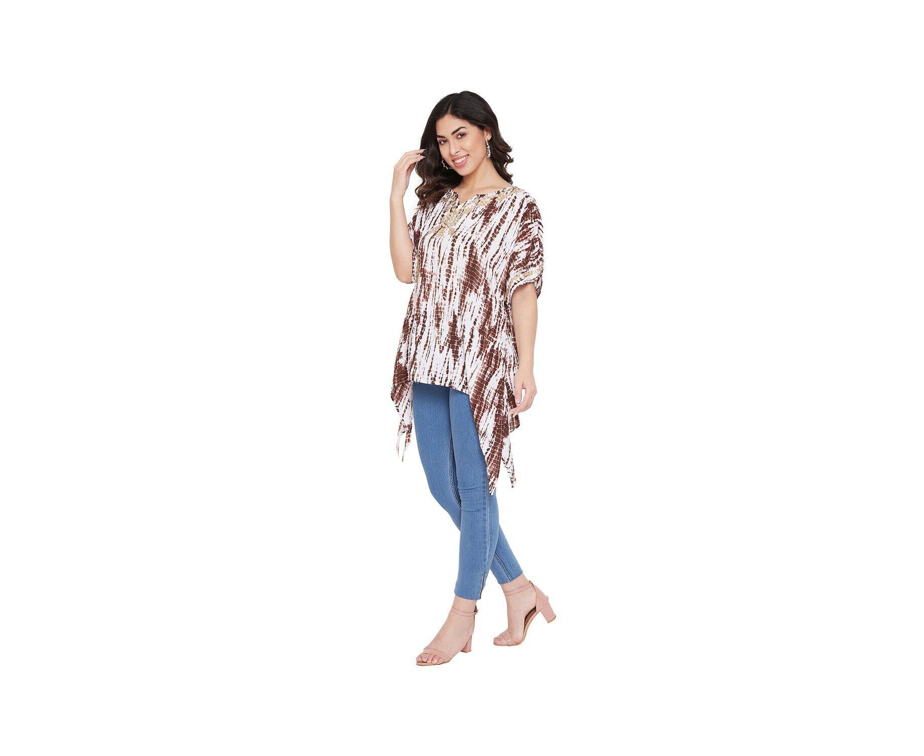 Rayon Tie Dye Embroidered Brown Kaftan Top