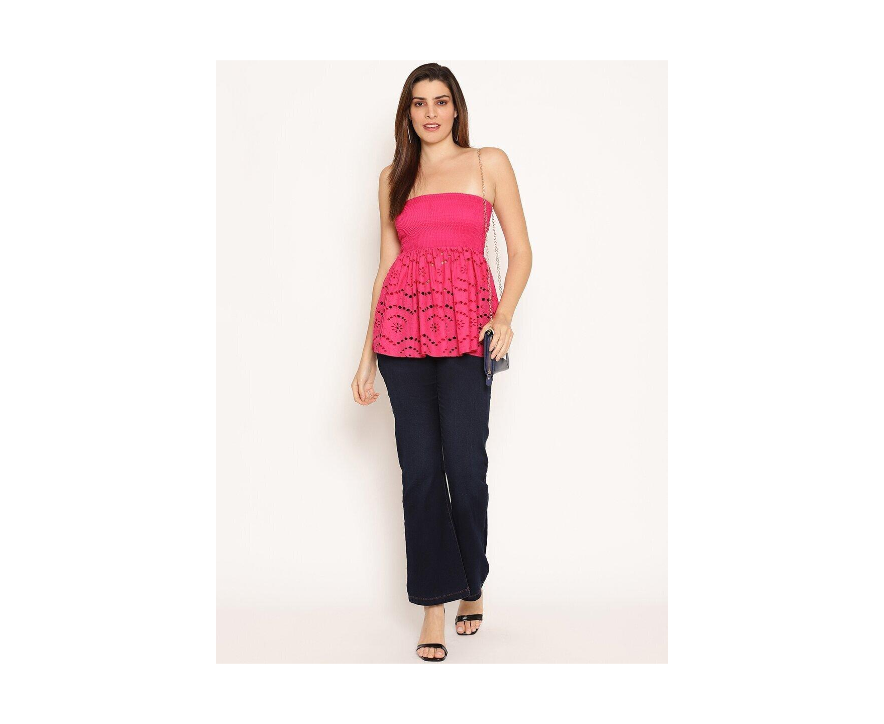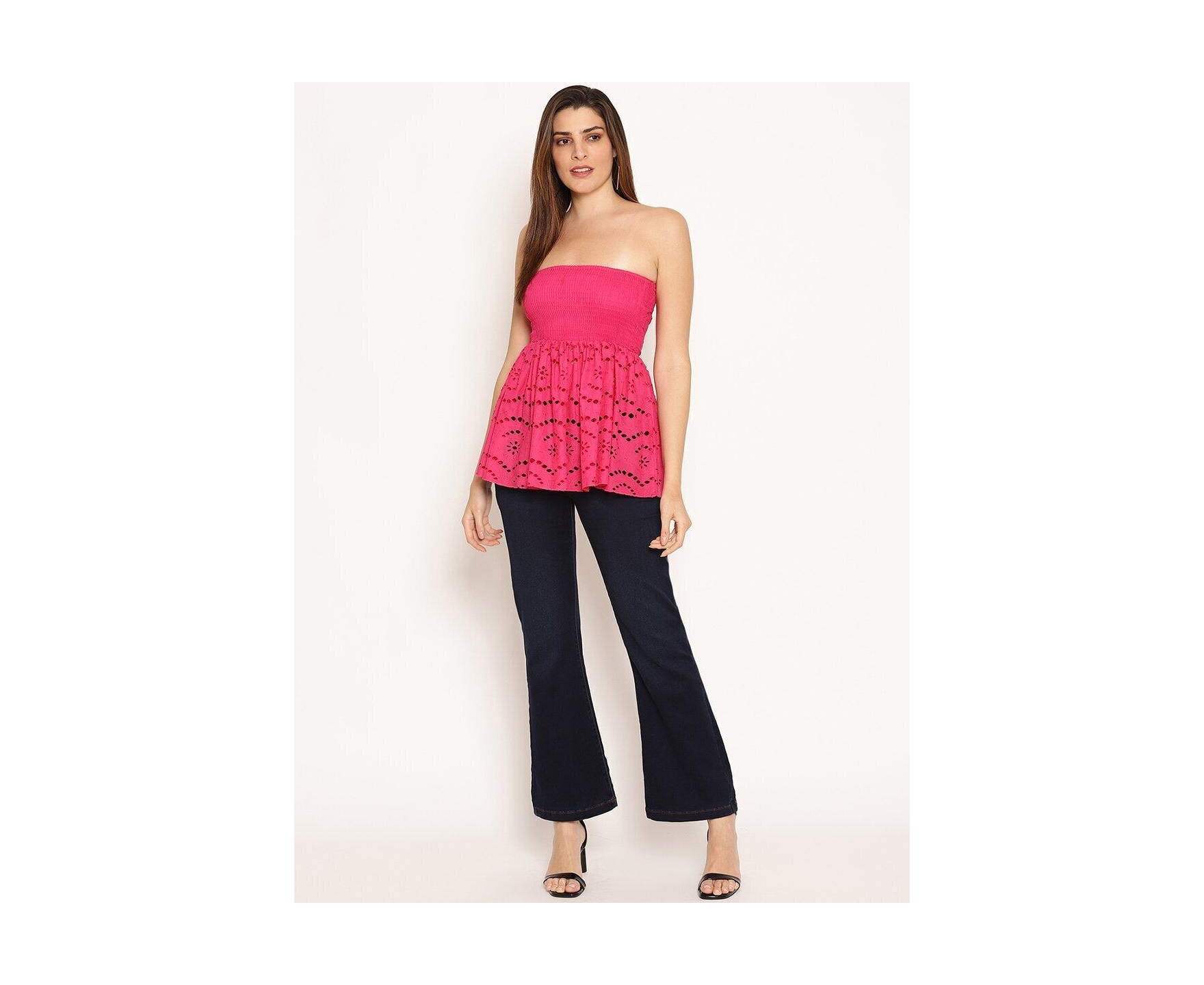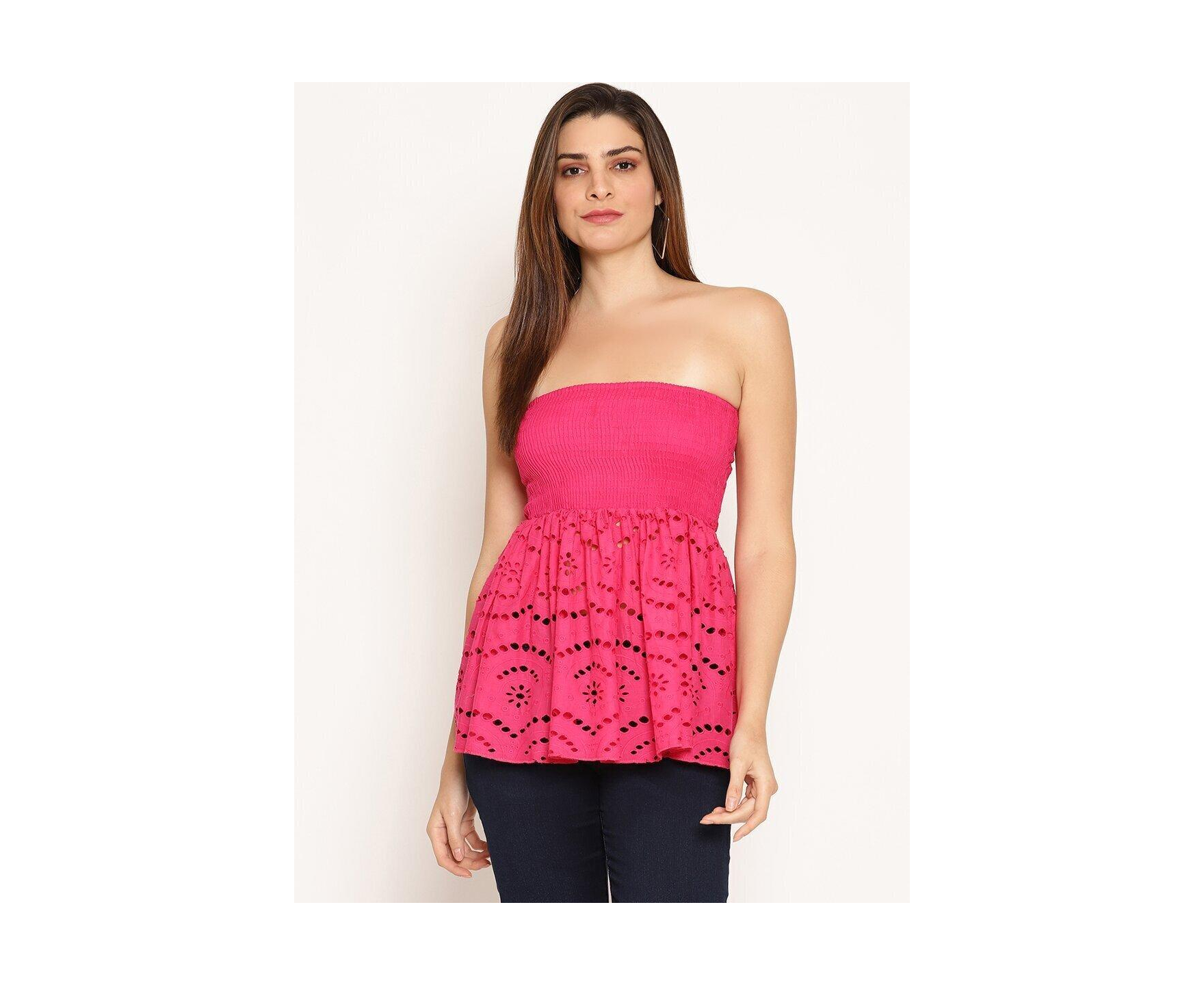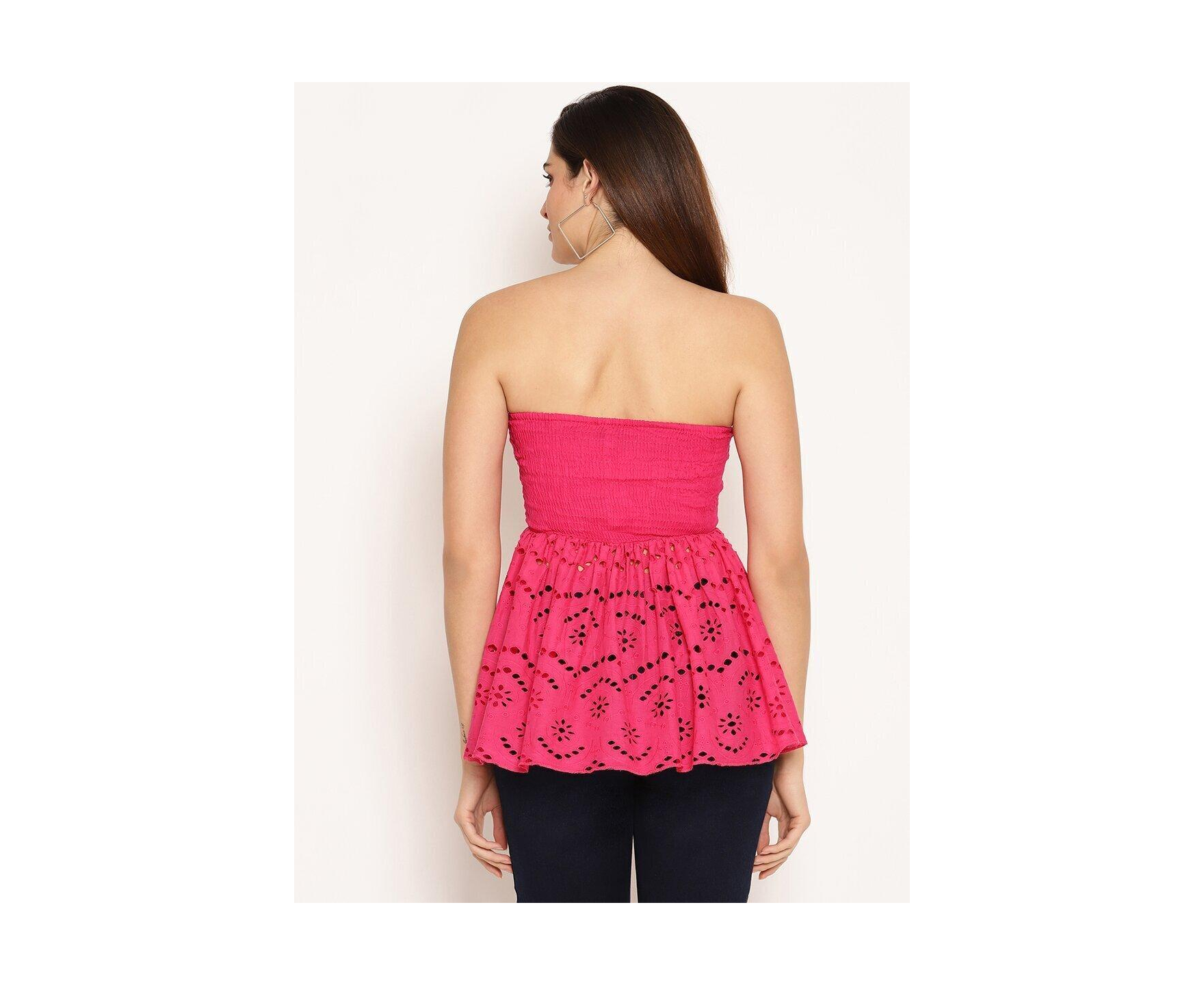 Women's Cotton Chiefly Cutted Pink Tube Top | Handmade Top for Women | Beach Top | Off the Shoulder Peplum Top | Smocked Tube top