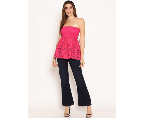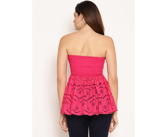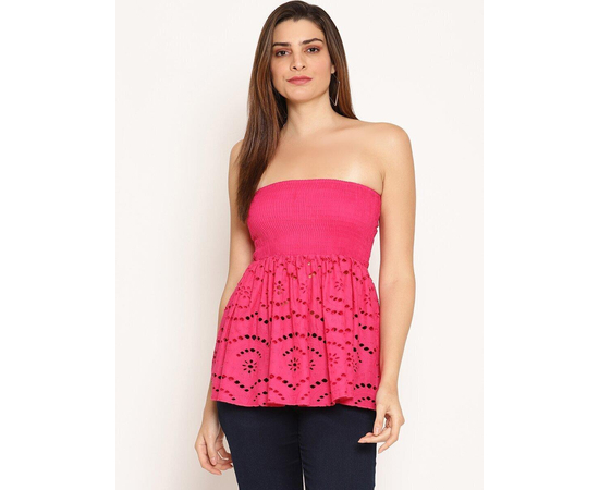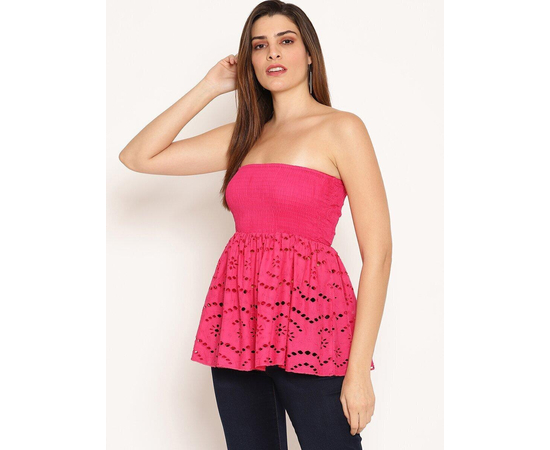 Women's Cotton Chiefly Cutted Pink Tube Top | Handmade Top for Women | Beach Top | Off the Shoulder Peplum Top | Smocked Tube top