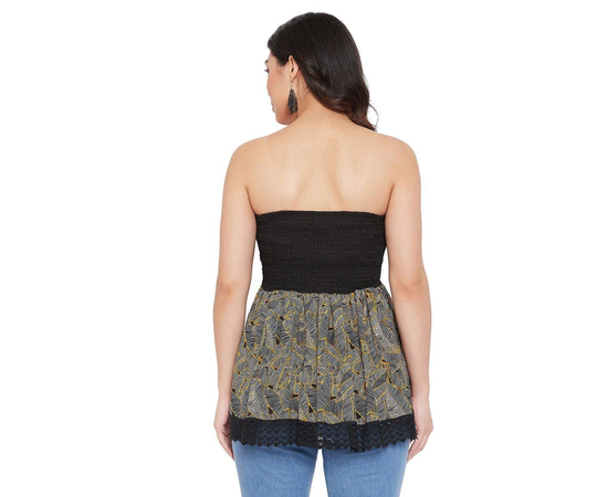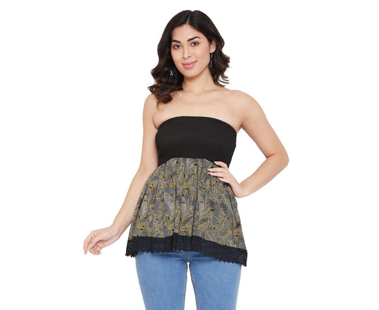 Women's Cotton Strapless Summer Cool Printed Black Tube Top