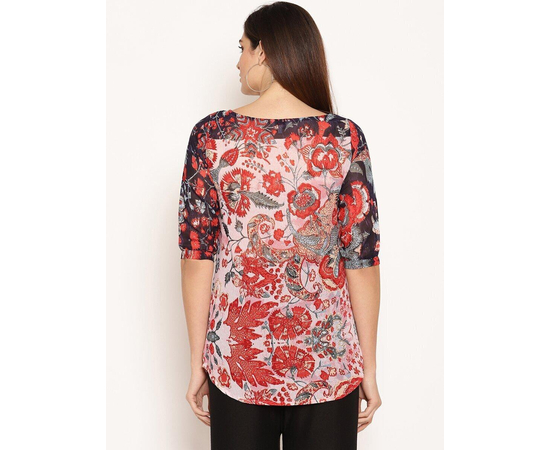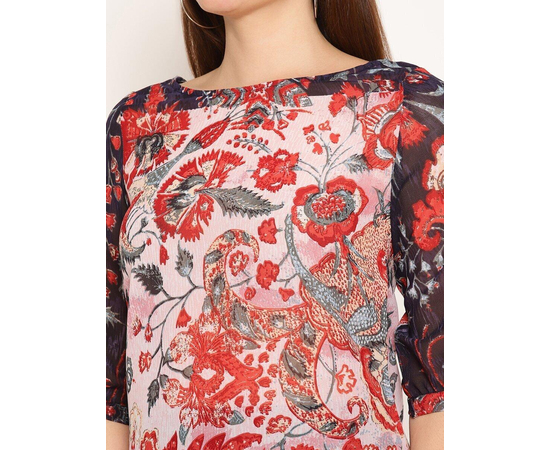 Women's Georgette Floral Red and Multicolor Tunic Georgette flutter Short sleeves