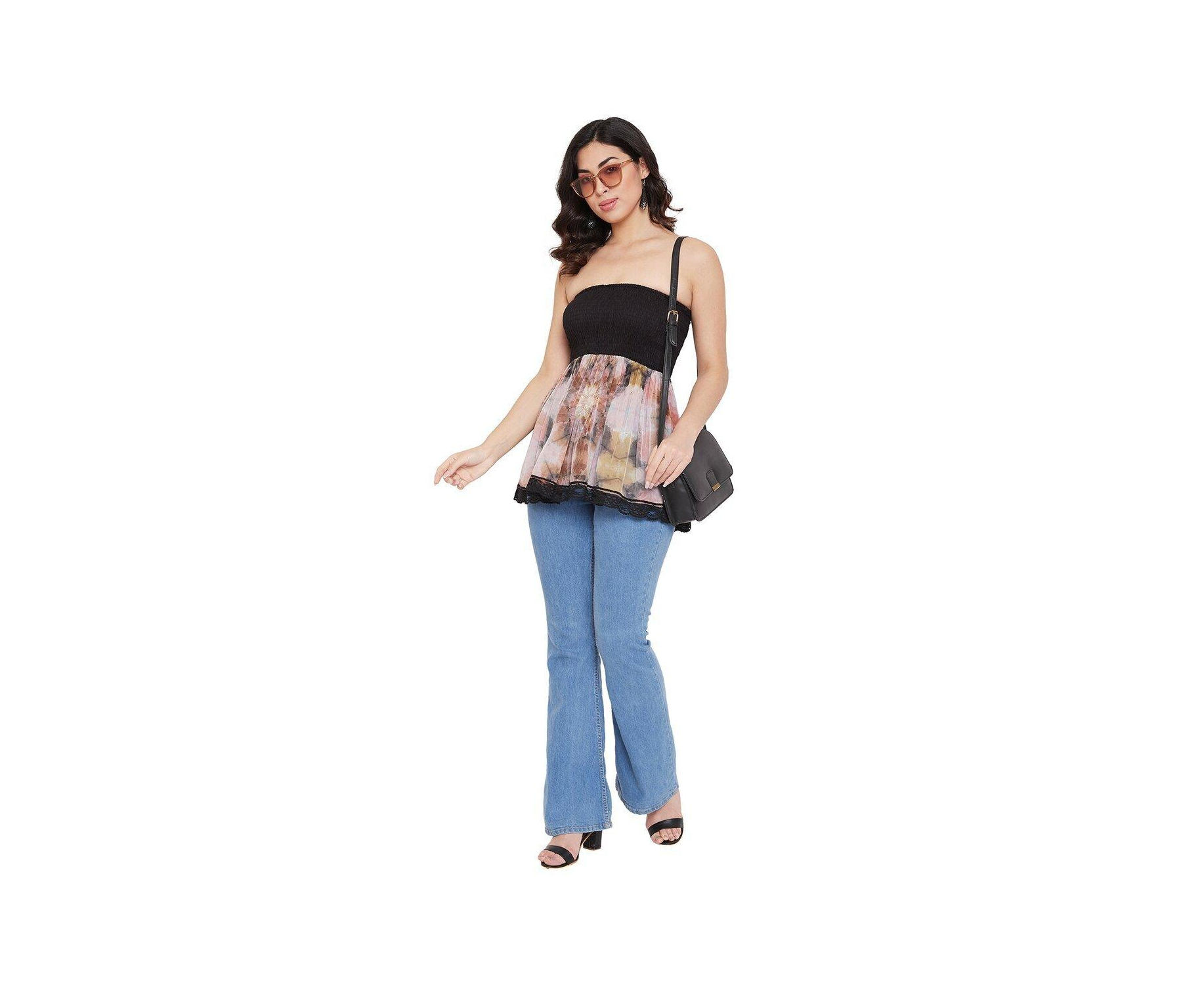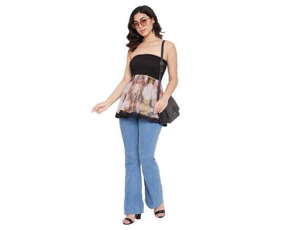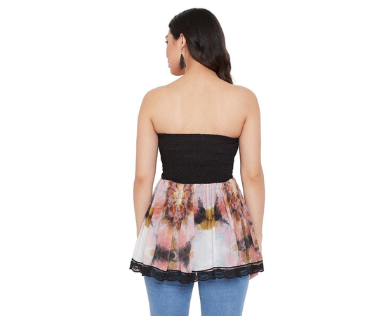 Women's Poly Crepe Black and Multi Tube Top Hot Girl Summer Cool Top