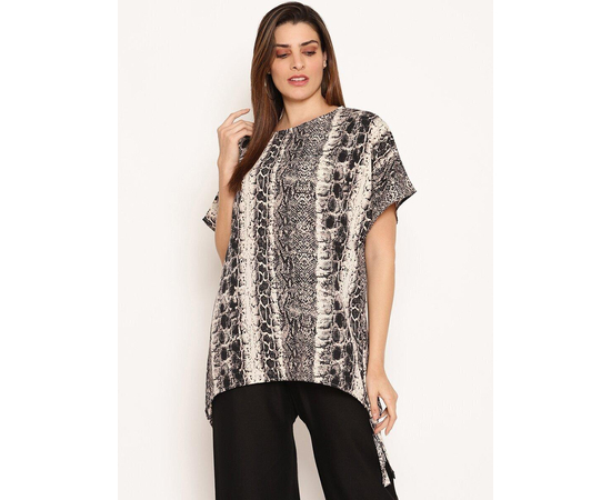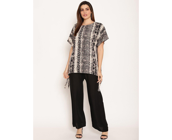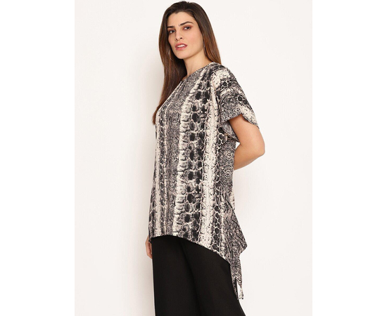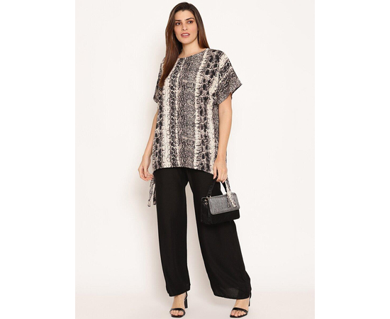 Women's Poly Crepe Black Printed Top Black boho Top, Handmade Top for Women, beach top