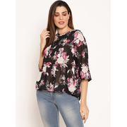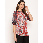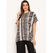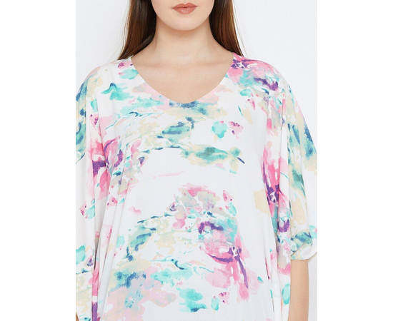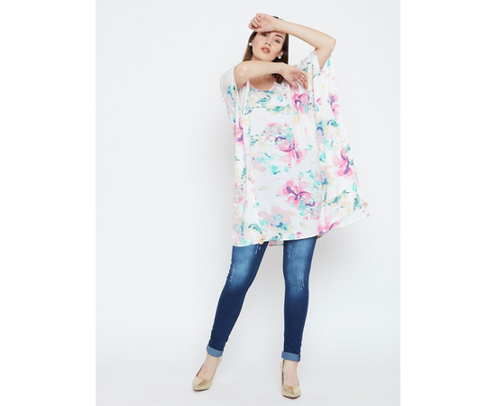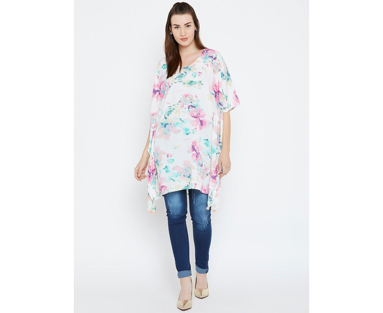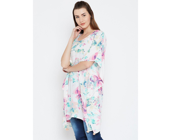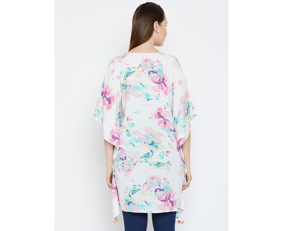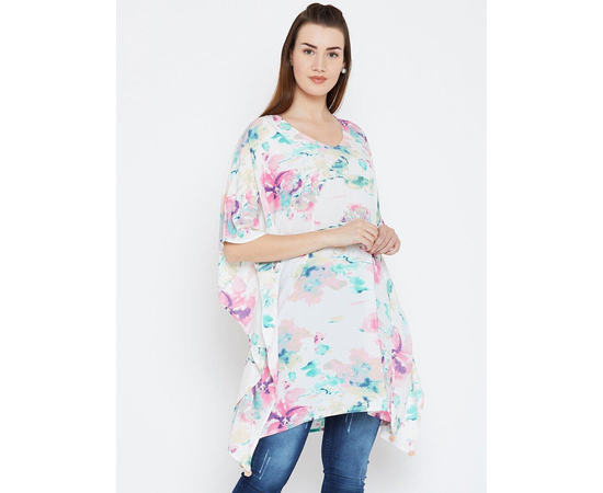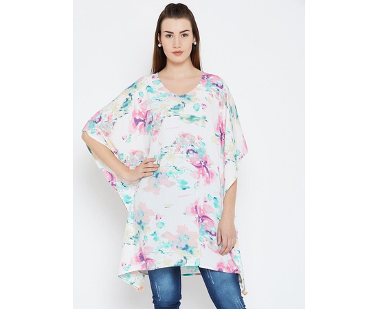 Women's Poly Crepe Floral White printed Kaftan Top, Summer White Tunic, Short Kaftan, Handmade Caftan, Beach cover up, Boho Loose Tunic, loungewear