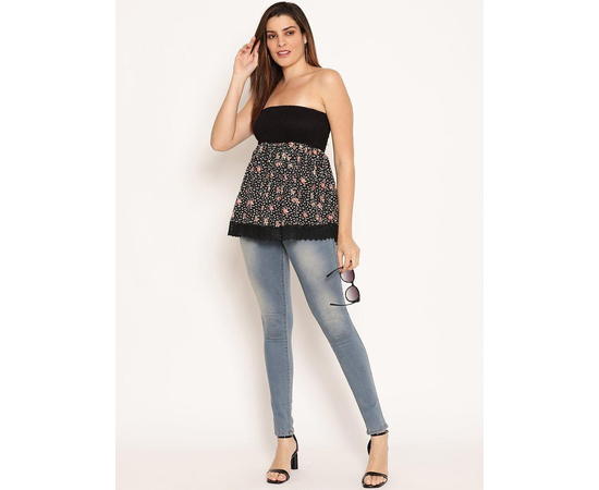 Women's Poly Crepe Printed Black Tube Top | Handmade Top for Women | beach sleeveless top | Off the Shoulder Peplum Top | Smocked Tube top