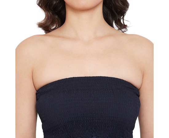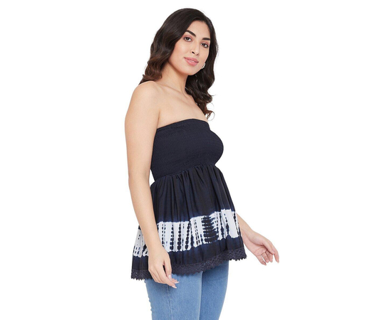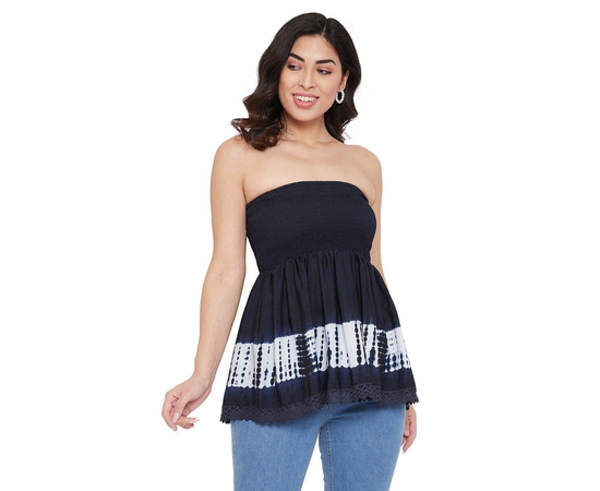 Women's Stylish Beautiful Poly Crepe Tye Dye Strapless Printed Navy Blue Tube Top