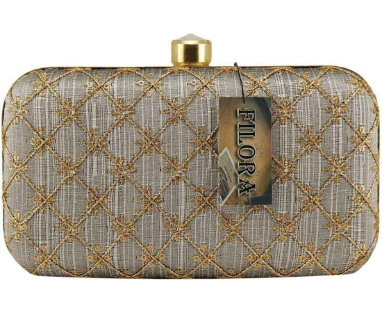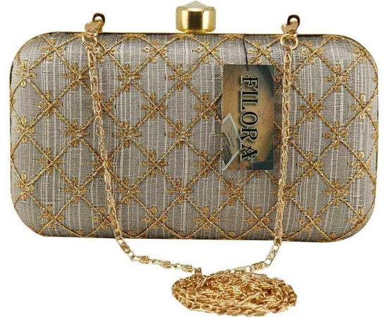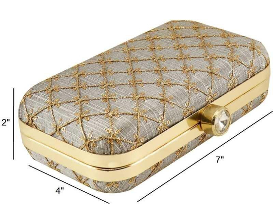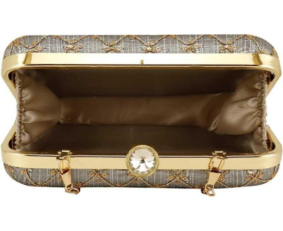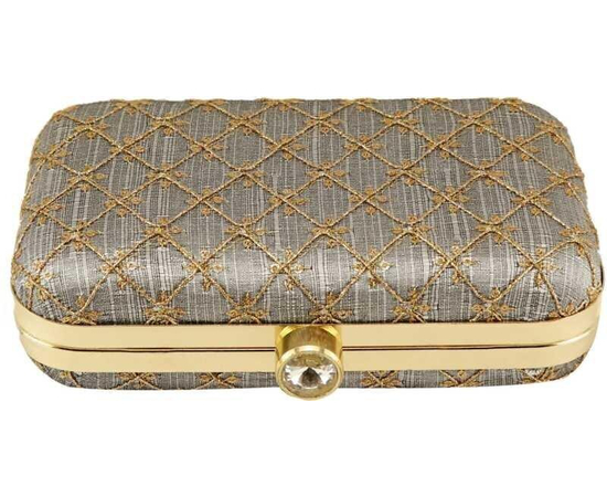 CLUTCH BAG PURSE, HANDCRAFTED Embroidered Wedding Clutch Evening Bag | ladies sling purse | handbag for women | PARTY bag | Ethnic bag | Grey & golden Clutch