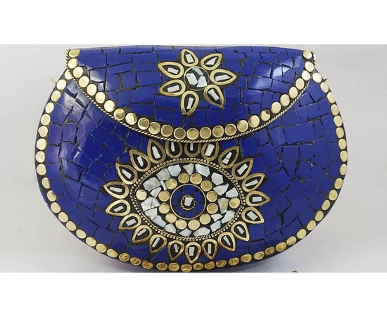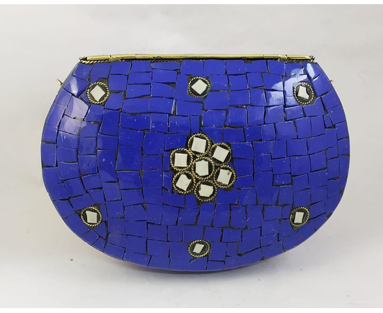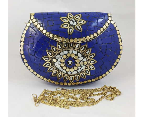 Handmade Royal blue color Clutch with stones, Birthday Gift, stone bag, ethnic clutch, indian antique purse, mosaic bag metal bag