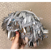 Handmade Metal Clutch cum Sling Bag made by Metal and beautiful stone work in whole bag, Old Indian Ethnic, Vintage Style transformation in modern look. Design by craftsman by cutting metal in frame and Fine stone work on it in mosaic pattern Detachable Tassel with Bag Inner Side is Velvet coated, this bag Clutch is suitable to keep Smart Cellphone and small accessories like Keys, Lipstick, Cards etc.