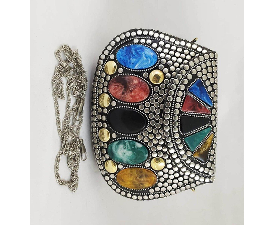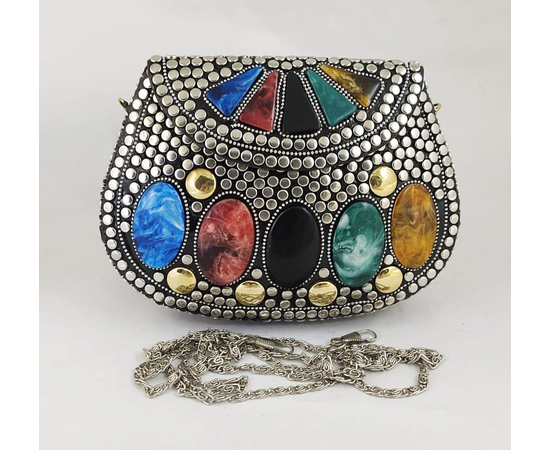 Handmade Ethnic look Metal Bag with Stones | Clutch bag for any occasion | Hand made | Metal Boho Bags with Stone | Bridal Clutch | Mosaic Shoulder Bag