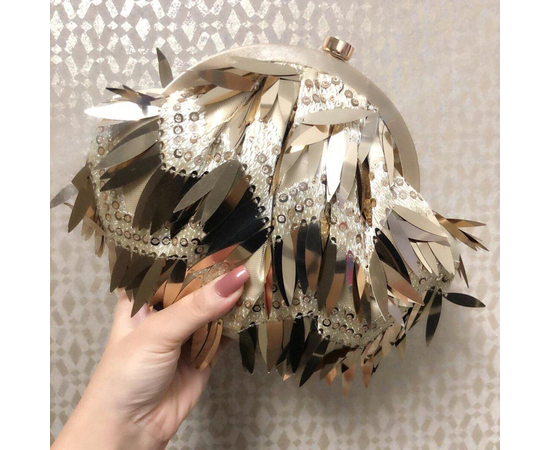 Fringe Clutch Bag In Golden Color/Women's Round Ball Clutch Purse/Sequins Beads/Evening Clutch/ Wedding Party Handbags