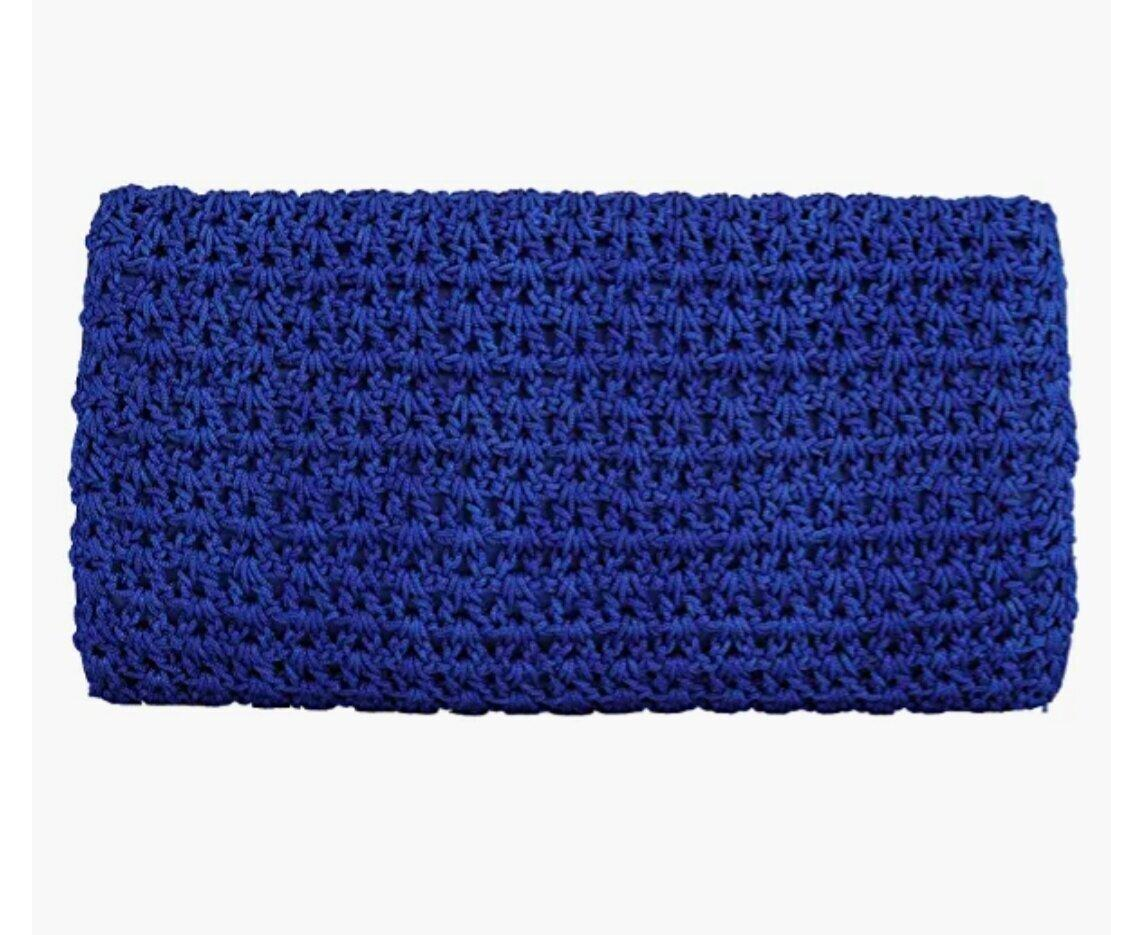 Envelope style crochet bag with wraparound closure that is a breeze to put phone or other small items in, take them out again.