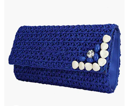 Handmade 100% cotton clutch is the perfect gift or accessory for any occasion. This is hand knitted by the rural women artisan of Narsapur Lace cluster, Andhra Pradesh, India.