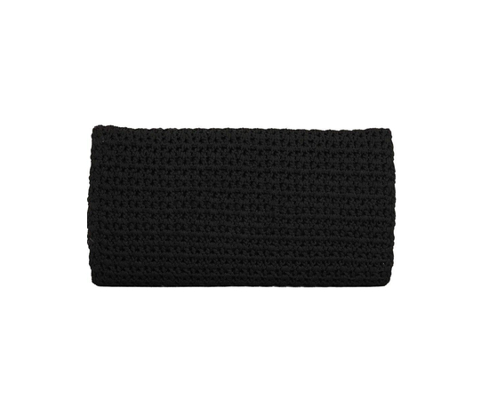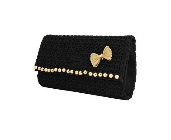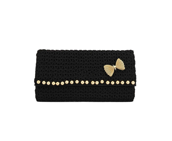 A total crochet clutch in black color with golden chain. This is an ideal bag for every woman's closet. It is crocheted with 100% cotton yarn and is hand knitted by the rural women artisan of Narsapur Lace cluster, Andhra Pradesh, India.