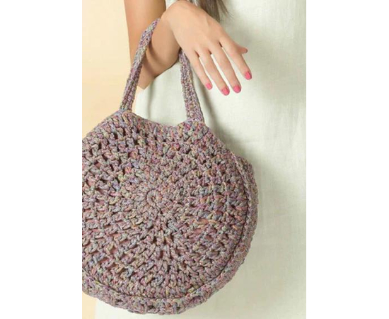 This hand-knitted round crochet handheld bag goes perfectly with all your outfits.