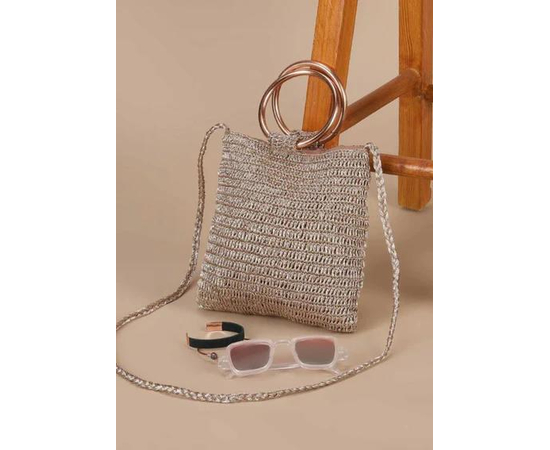Handmade Shimmering Gold Crochet Handheld For Daily, Office and Causal