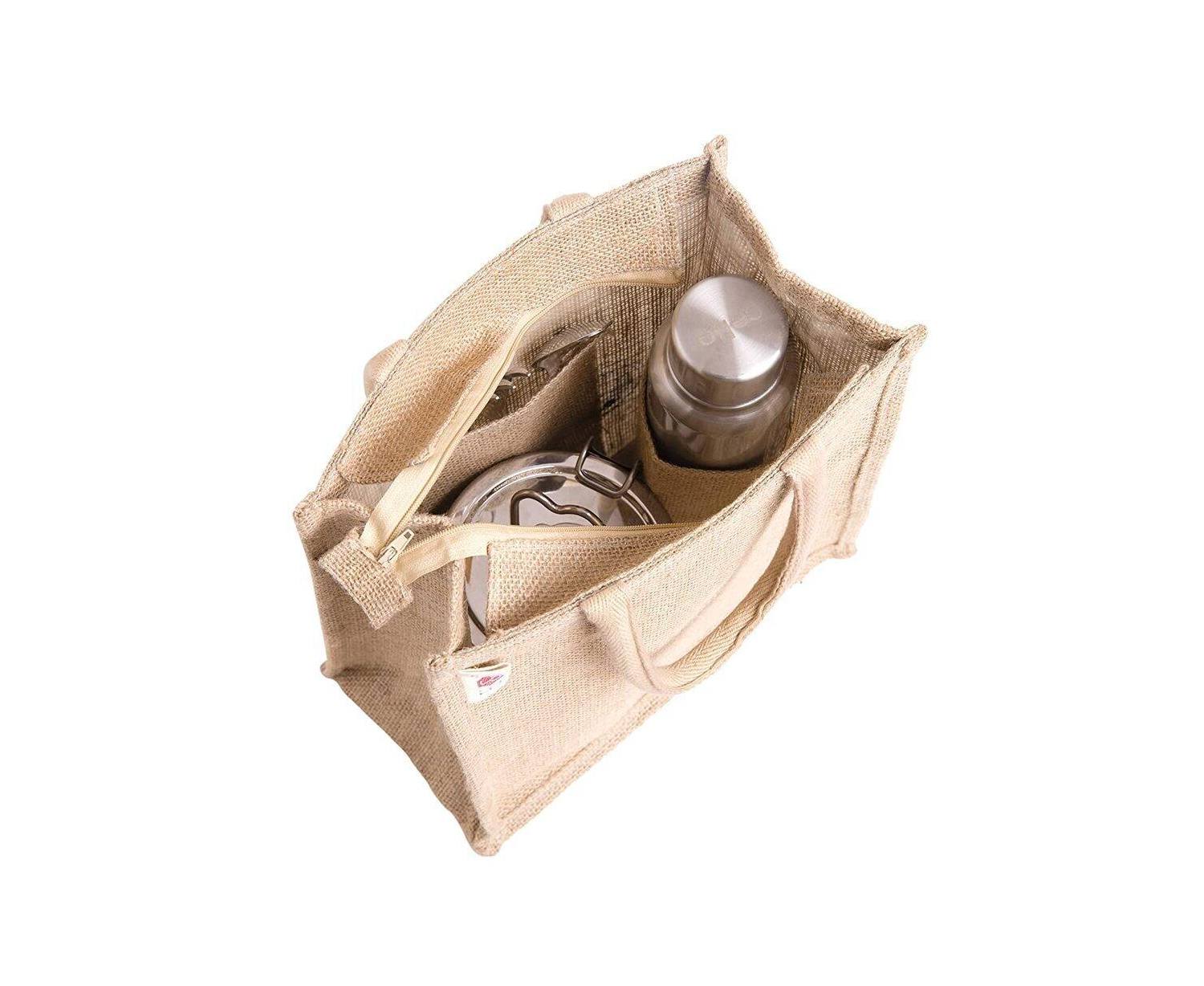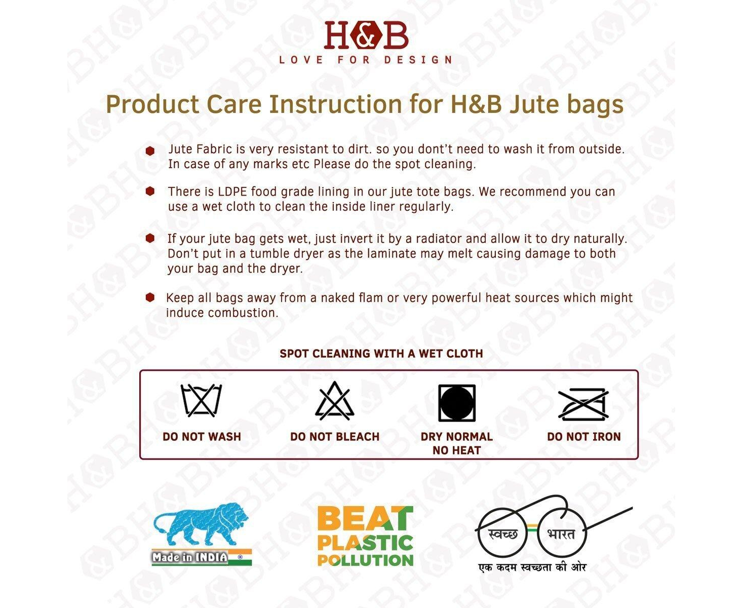 - PROUDLY MADE IN INDIA - H&B Jute Bag is made of natural Jute or burlap which is laminated inside for extra strength GO GREEN WITH H&B REUSABLE BAGS – H&B Green Bags are healthy for the environment – these tiffin bags are Comfortable, Durable & Lightweight - 100% Biodegradable and Recyclable, Eco Friendly Bag and also foldable, collapsible which makes storage and organization easy and accessible.