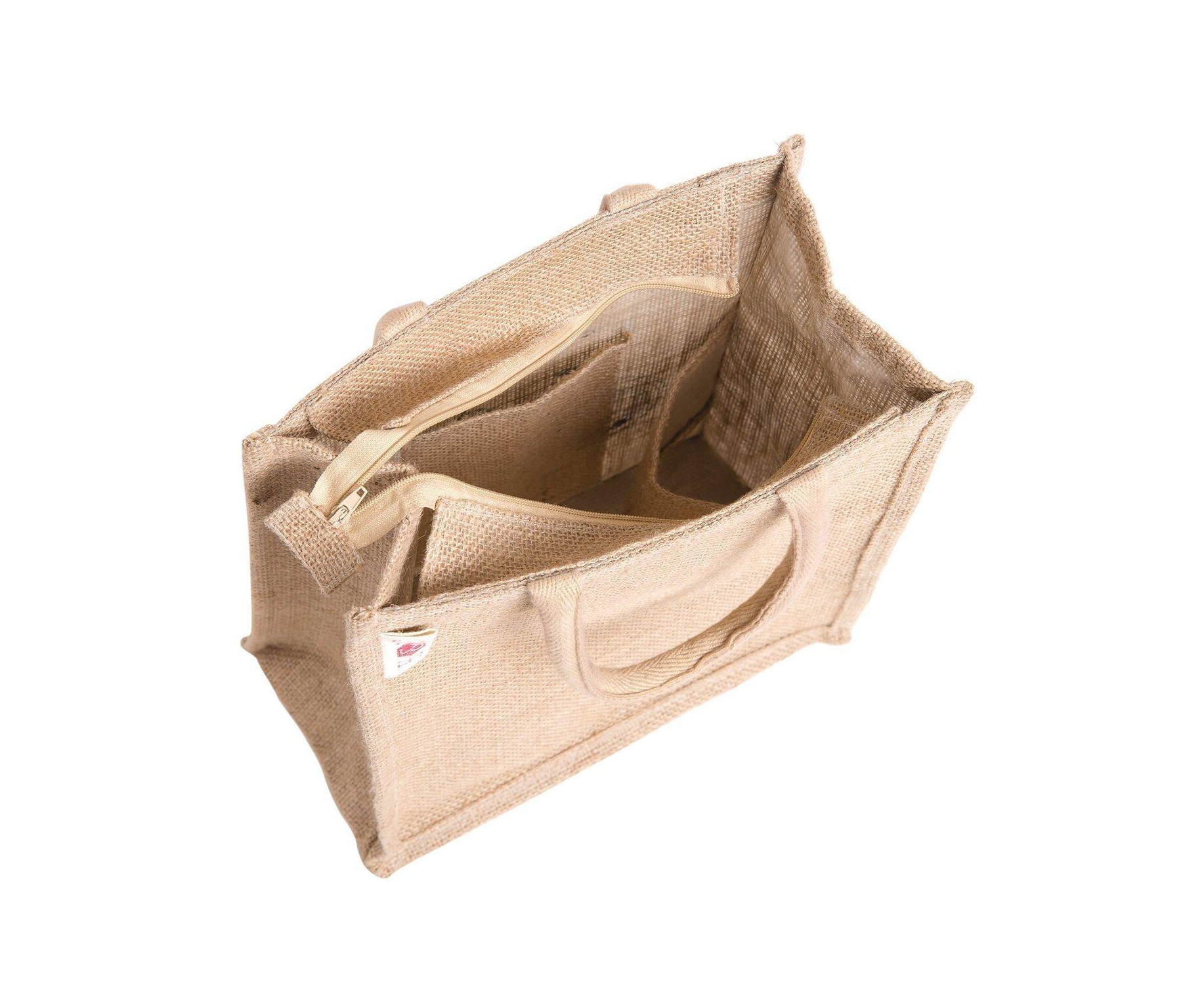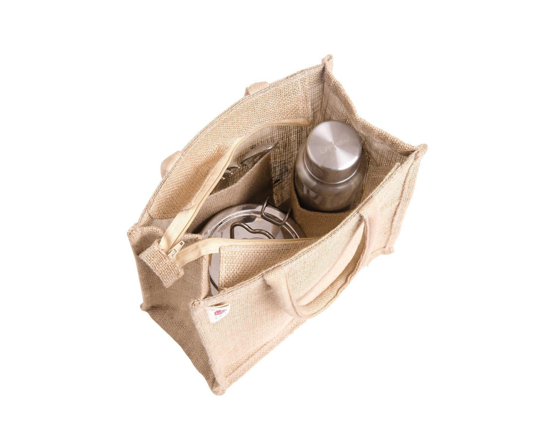 Jute handbag, Handmade Indian Jute Tote Bag, Reusable Carry Bag, tiffin bag, Printed bag, Eco-Friendly Tote, Shopper with handle, Waterproof, With Inner Compartments – ZIP, BOTTLE HOLDER, Indian Handicraft