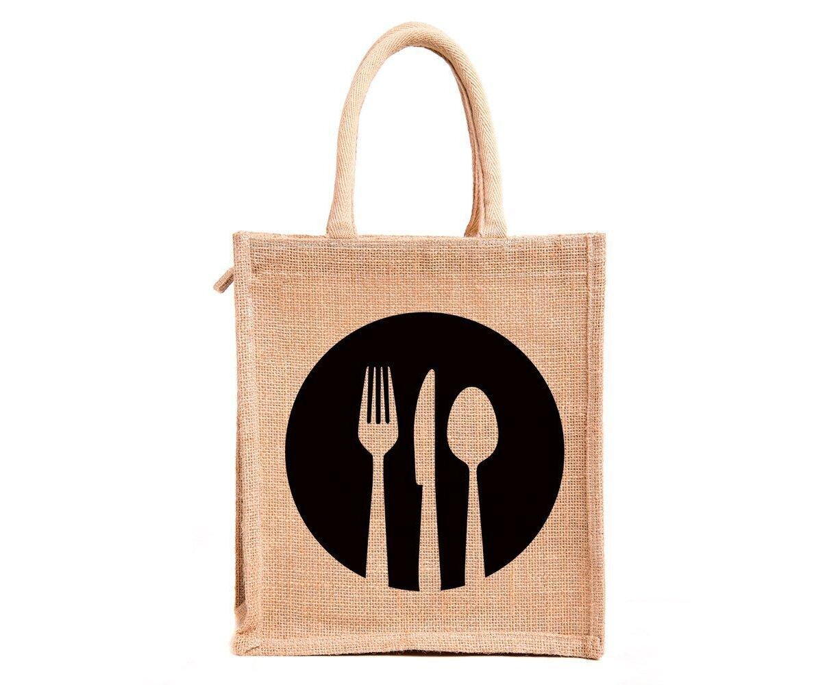 Jute handbag, Handmade Indian Jute Tote Bag, Reusable Carry Bag, tiffin bag, Printed bag, Eco-Friendly Tote, Shopper with handle, Waterproof, With Inner Compartments – ZIP, BOTTLE HOLDER, Indian Handicraft